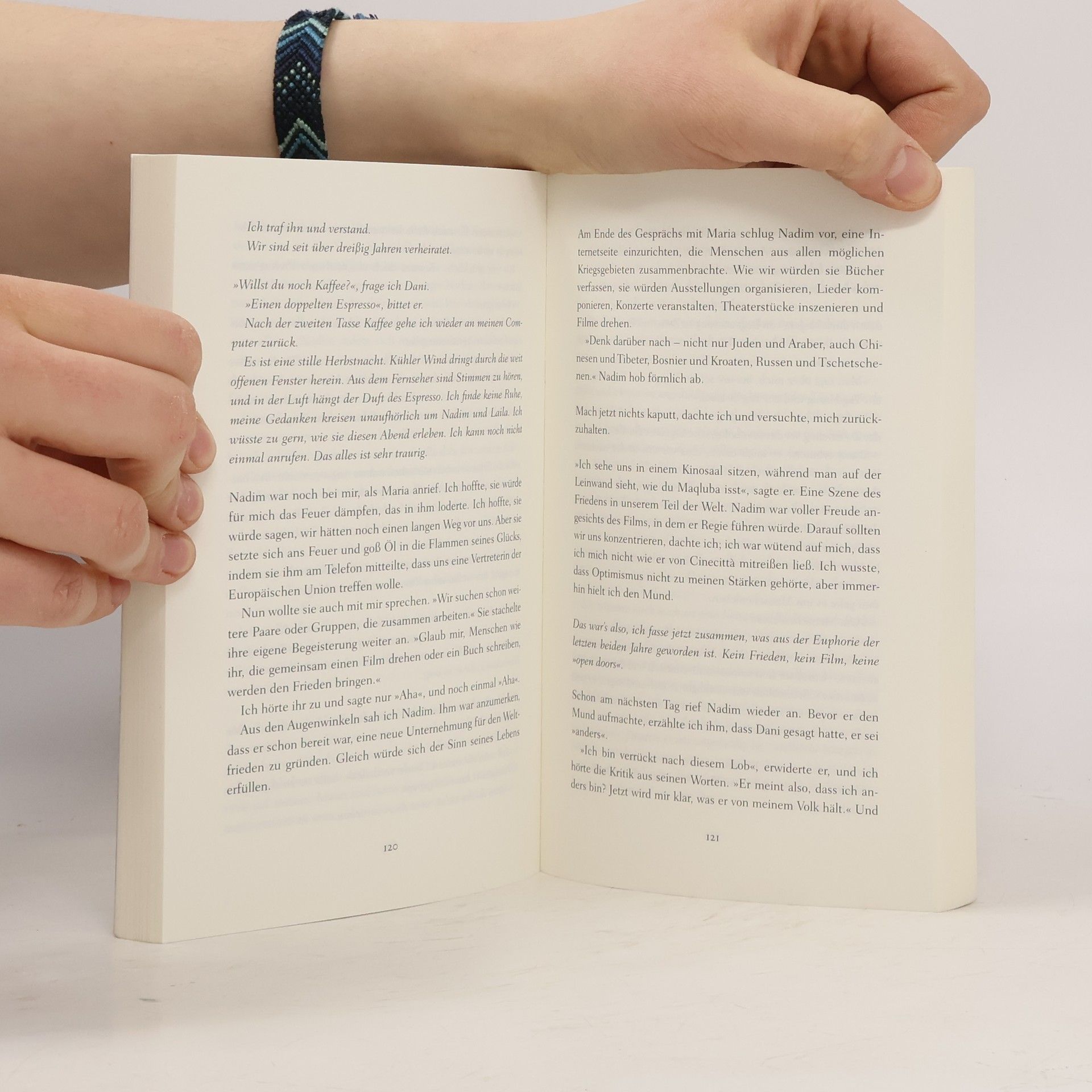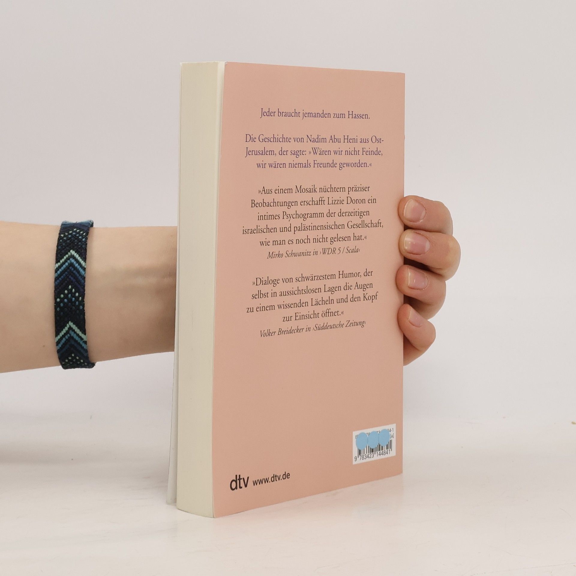 Hass ist ein Gefühl, aber Frieden ist eine Entscheidung Zuerst: Ein Hotel in Rom. Eine israelischpalästinensische Konferenz: Aber ist der Mann, der mit Lizzie auf dem Podium sitzt, nicht vielleicht doch ein arabischer Selbstmordattentäter mit Sprengstoffgürtel? Nein, Nadim pflegt nur seine Reiseunterlagen mit schwarzem Klebeband am Hosenbund zu befestigen, und dafür gibt es Gründe ... Dann: High Heels in Ost-Jerusalem? Ein Palästinenser im vornehmen Tel Aviver Apartmentgebäude? Von Anfang an ist es eine wechselvolle Freundschaft, die sich zwischen der israelischen Schriftstellerin Lizzie Doron und dem arabisch-palästinensischen Journalisten Nadim entwickelt, begleitet von Vorurteilen und Unverständnis. Es gibt Grenzen der Verständigung. Lizzie hat den Holocaust im Gepäck, Nadim die Nakba – die große Katastrophe –, wie die Palästinenser die Folgen des 48er-Krieges nennen. Sie begreifen, dass sie dieselbe Irrenanstalt bewohnen, nur in verschiedenen geschlossenen Abteilungen. Nadims Frau ist aus Gaza, hat aber keinen Ort, an dem sie bleiben kann ...