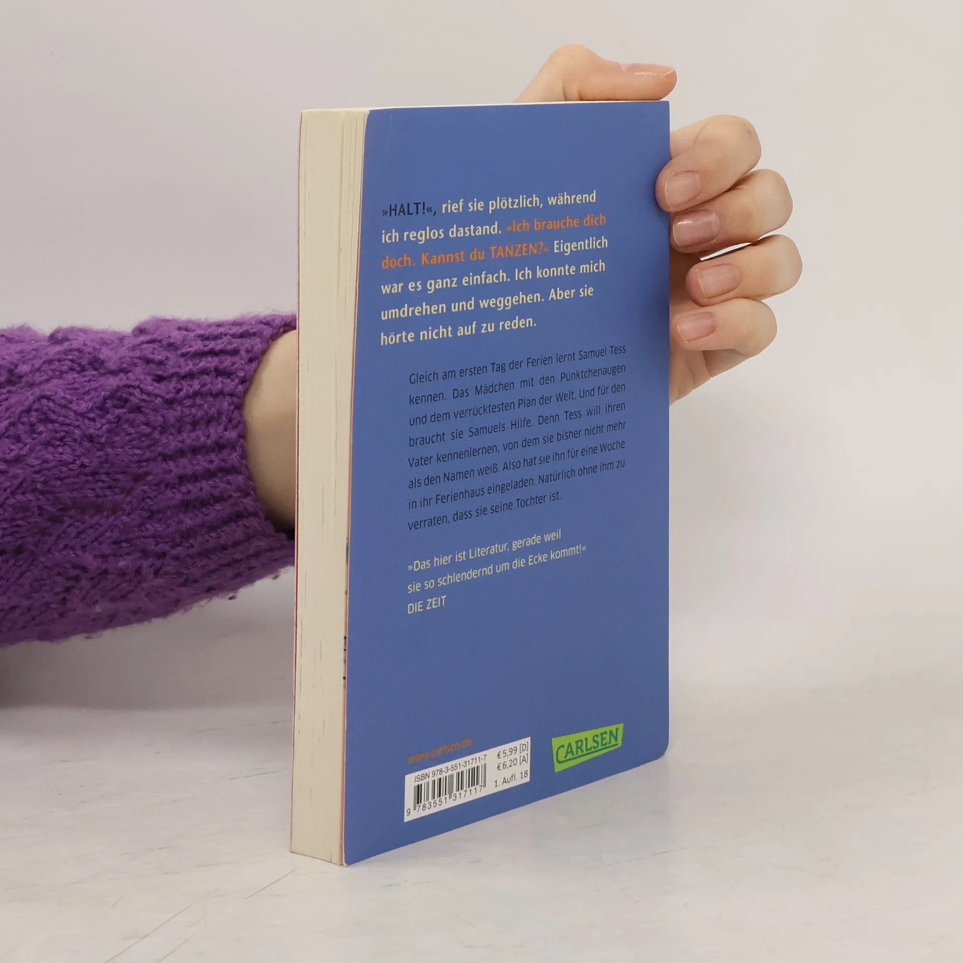 Gleich am ersten Tag der Ferien lernt Samuel Tess kennen. Das Mädchen mit den Pünktchenaugen und dem verrücktesten Plan der Welt. Und für den braucht sie Samuels Hilfe. Denn Tess will ihren Vater kennenlernen, von dem sie bisher nicht mehr als den Namen weiß. Also hat sie ihn für eine Woche in ihr Ferienhaus eingeladen. Natürlich ohne ihm zu verraten, dass sie seine Tochter ist. Der Plan geht gründlich schief und am Ende fliegt alles auf, aber eines ist klar: Tess möchte ihren Vater haben und ihr Vater möchte Tess haben.