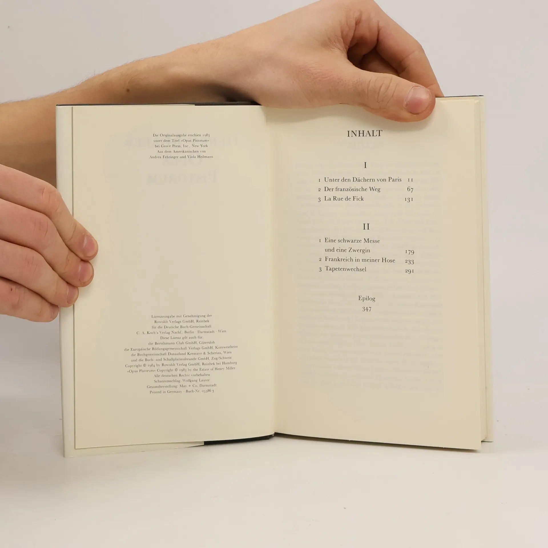 "Henry, der Geld brauchte, schlug mir vor, er werde für mich verkäufliche Texte schreiben. Ich bot ihm ein Honorar von einem Dollar pro Seite, dafür erhielt ich alle Rechte ... Ich bezahlte immer bar, wie ausgemacht. Nach wenigen Monaten ergaben die angesammelten Seiten ein komplettes Buch, dem er den Titel OPUS PISTORUM gab" (Milton Luboviski, Buchhändler in Hollywood, 1983 in einer eidesstattlichen Erklärung). Diese spät entdeckten Erotica des großen Autors sind für Kenner - und nicht nur für diese - eine literarische Sensation.