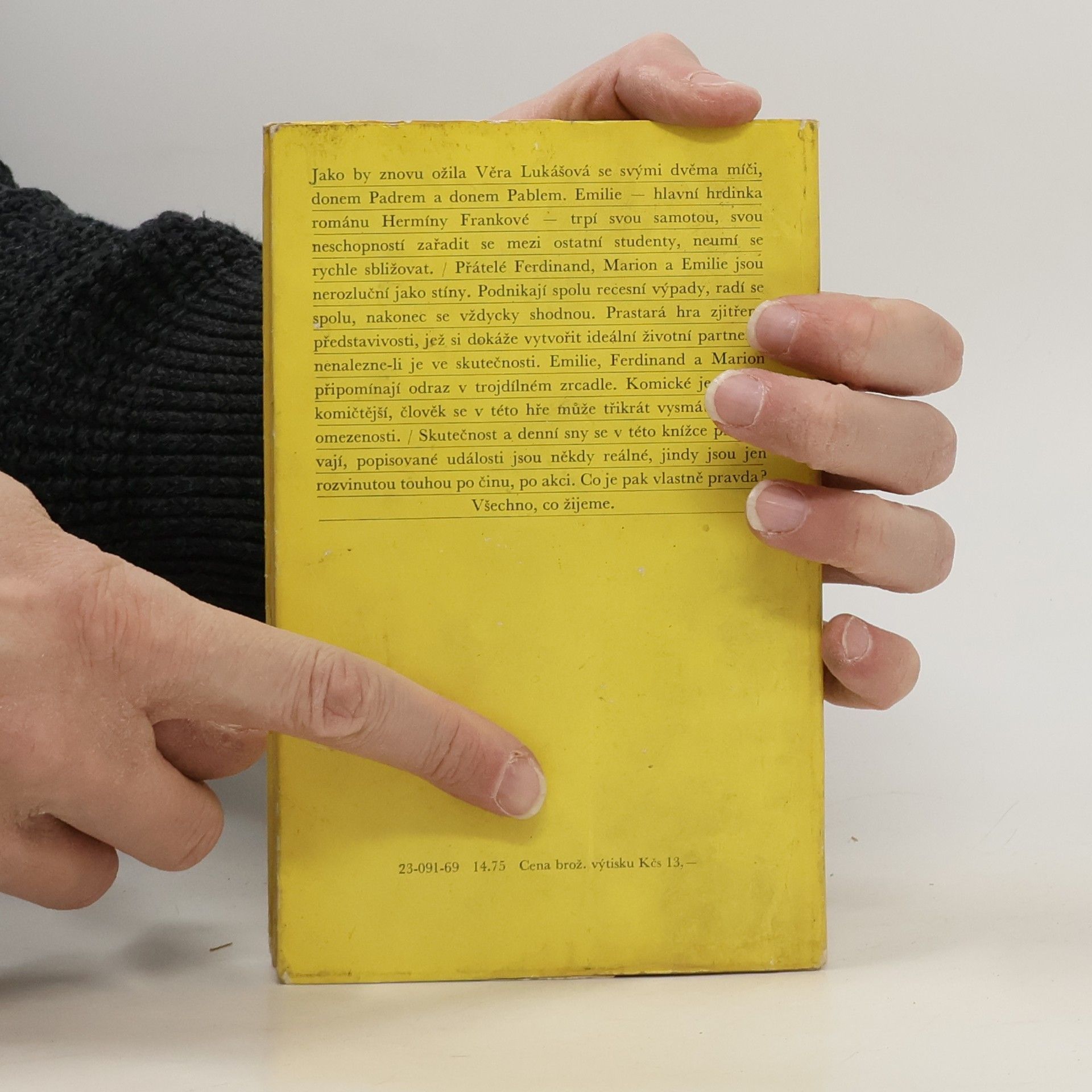 V románu H. Frankové je ústřední postavou studentka Emílie, bytost osamocená, která si vytváří ideální společníky Ferdinanda a Mariona, aby sama byla Emílií vysněného trojlístku. Skutečností se v subtilně řazených obrazech a představách stává vše, co je žitým obsahem hrdinčina vědomí.