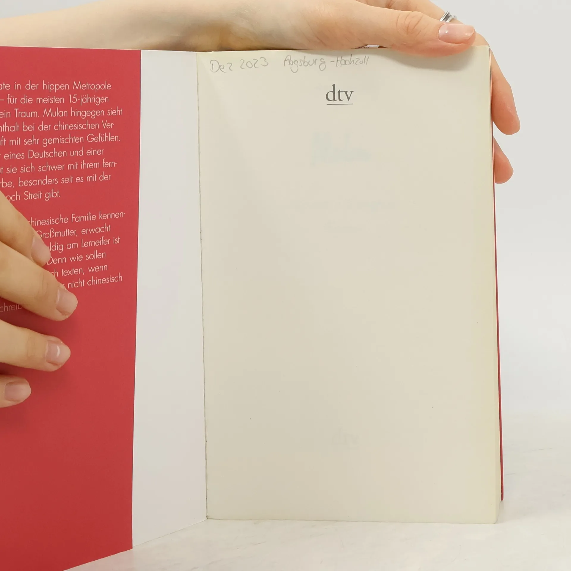 Drei Monate in der hippen Metropole Shanghai – für die meisten 16-Jährigen wäre das ein Traum. Mulan hingegen sieht ihren Aufenthalt bei der chinesischen Verwandtschaft mit sehr gemischten Gefühlen. Als Tochter eines Deutschen und einer Chinesin tut sich die Münchnerin mit ihrem fernöstlichen Erbe schwer, besonders seit es mit der Mutter nur noch Streit gibt, weil Mulan sich weigert, mit ihr Chinesisch zu sprechen und die Schrift zu lernen. Doch als sie ihre chinesische Familie kennenlernt, vor allem ihre Großmutter, erwacht die Neugierde am mütterlichen Erbe. Mitschuld am Lerneifer ist sicher auch Nianshen. Denn wie sollen die beiden Liebenden kommunizieren, wenn Mulan nicht chinesisch lesen und schreiben kann?