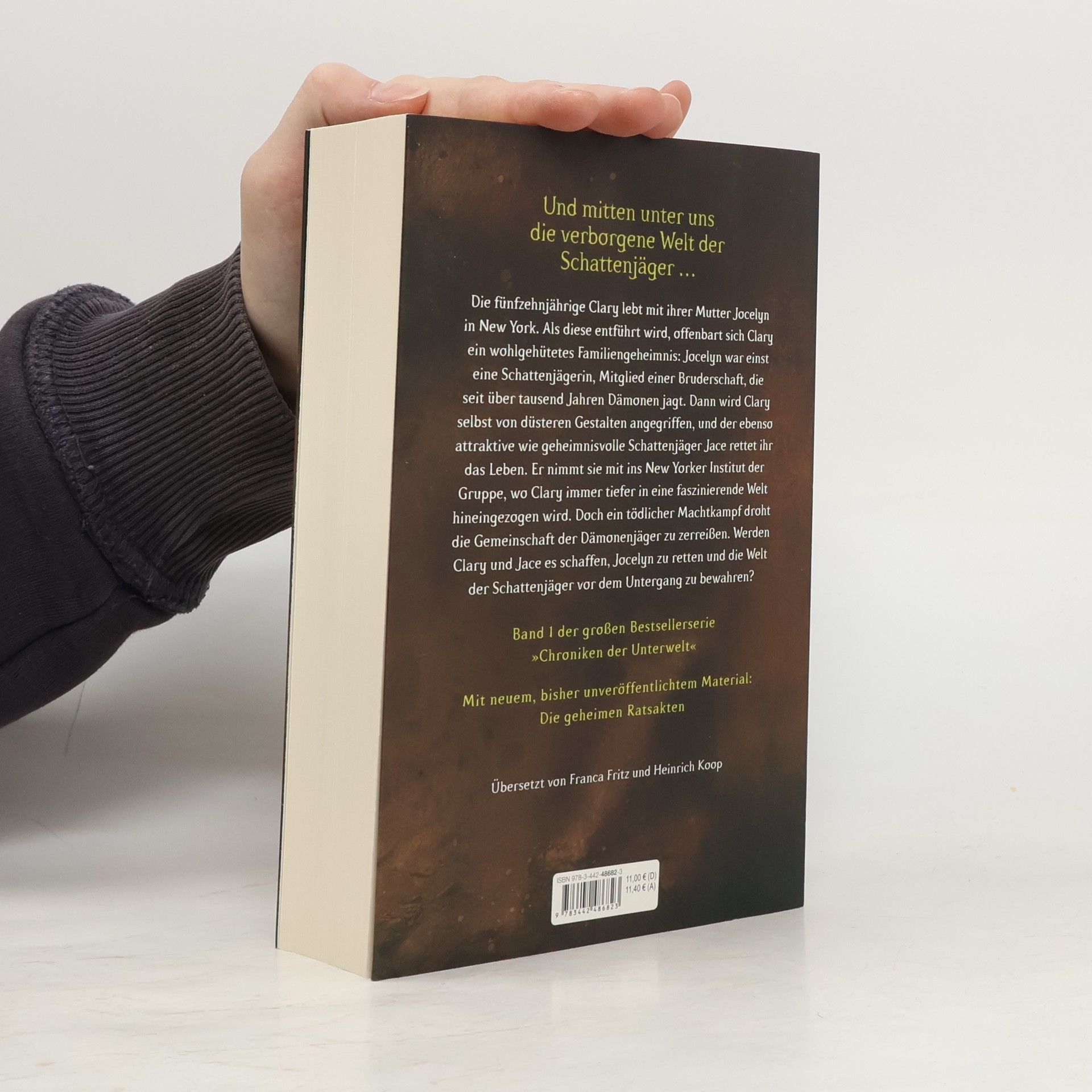 Die fünfzehnjährige Clary lebt mit ihrer Mutter Jocelyn in New York. Als diese unter höchst merkwürdigen Umständen entführt wird, offenbart sich Clary ein wohlgehütetes Familiengeheimnis: Ihre Mutter war einst eine Schattenjägerin, Mitglied einer Bruderschaft, die seit über tausend Jahren Dämonen jagt. Als Clary selbst von düsteren Gestalten angegriffen wird, rettet der ebenso attraktive wie geheimnisvolle Jace ihr das Leben. Er nimmt sie mit ins New Yorker Institut der Gruppe, und nach und nach wird Clary immer tiefer in diese faszinierende Welt hineingezogen. Doch ein tödlicher Machtkampf zwischen Gut und Böse droht die Gemeinschaft der Dämonenjäger zu zerreißen. Werden Clary und Jace es schaffen, Jocelyn zu retten und die Welt der Schattenjäger vor dem Untergang zu bewahren?Neuausgabe des bereits 2008 erschienenen Romans.