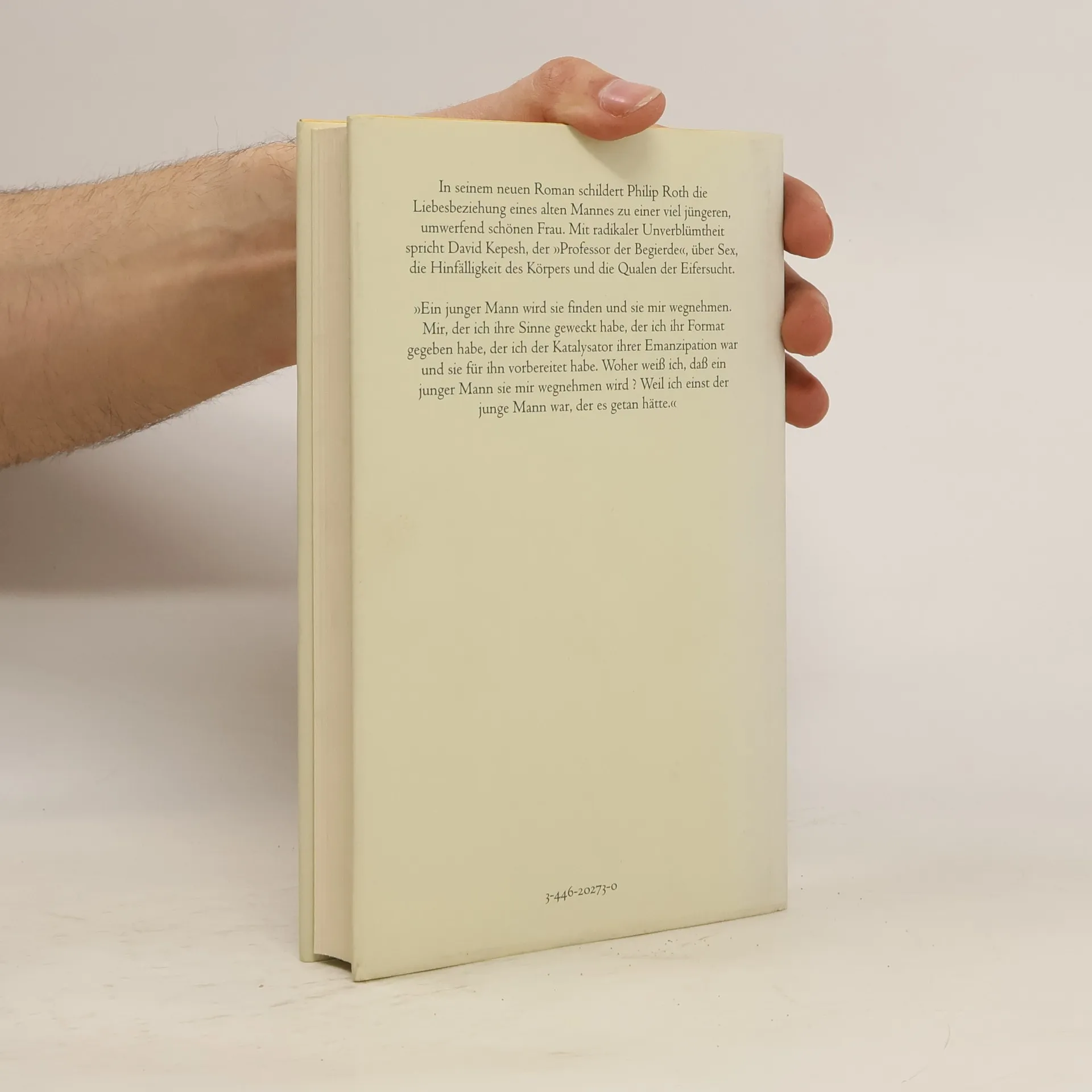 Nach seinem gefeierten Roman „Der menschliche Makel“ ein neues Meisterwerk von Philip Roth. David Kepesh, ein in Ehren ergrauter Kulturkritiker, ist über sechzig, als er die Studentin Consuela kennen lernt, die sein Leben in erotische Turbulenzen stürzt ... Ein Roman, in dem ein Mann seine intimsten Seelenregungen preisgibt und über Sex, die Hinfälligkeit des Körpers und das Altern auf eine Weise spricht, die einem den Atem raubt.