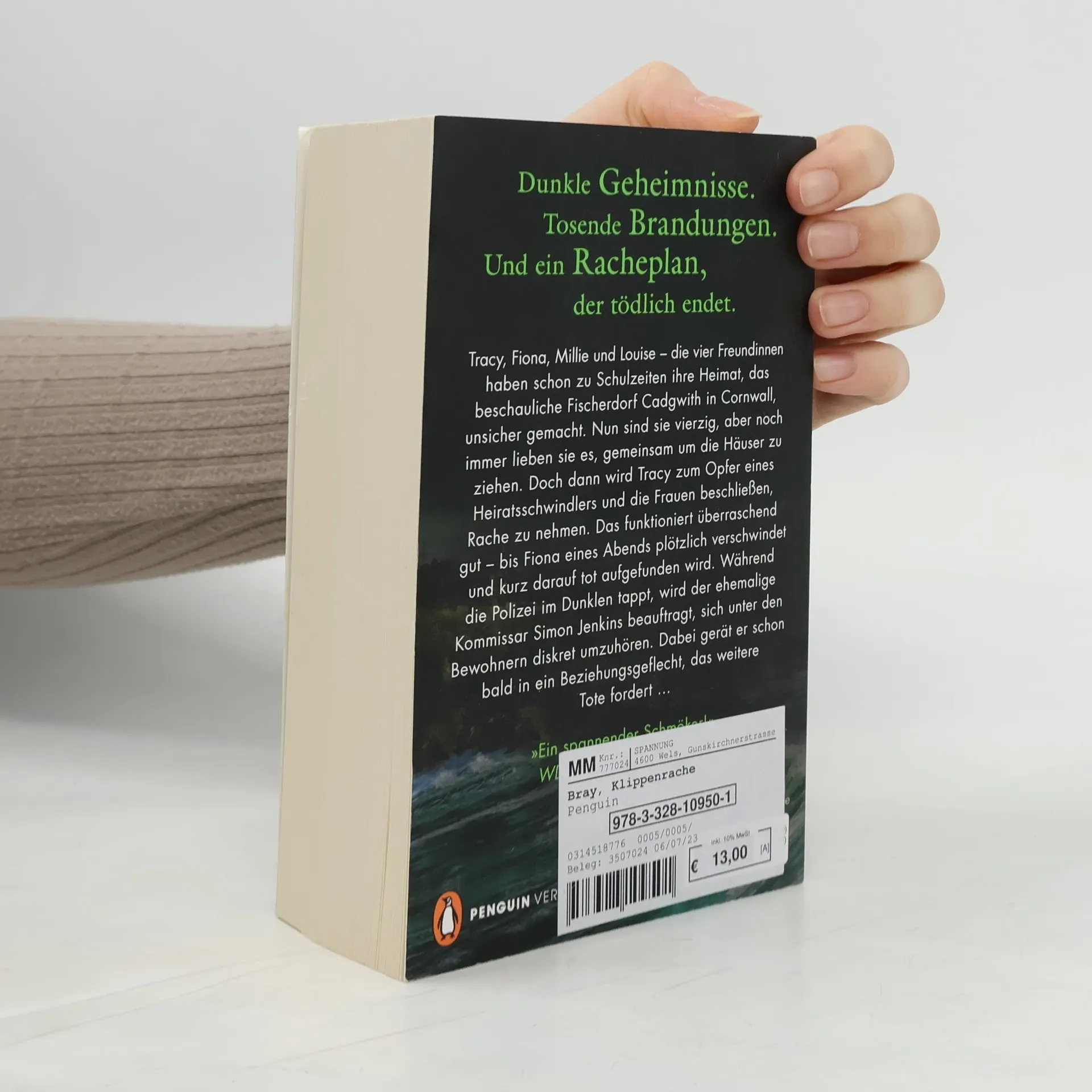 Ein Racheplan, der tödlich endet. Ein neuer Fall für den Kommissar, der nie mehr ermitteln wollte. Tracy, Fiona, Millie und Louise – die vier Freundinnen haben schon zu Schulzeiten ihre Heimat, das beschauliche Fischerdorf Cadgwith in Cornwall, unsicher gemacht. Nun sind sie vierzig, aber noch immer lieben sie es, gemeinsam um die Häuser zu ziehen. Doch dann wird Tracy zum Opfer eines Heiratsschwindlers und die Frauen beschließen, Rache zu nehmen. Das funktioniert überraschend gut – bis eines Abends plötzlich Fiona verschwindet und sie kurz darauf tot aufgefunden wird. Während die Polizei im Dunklen tappt, wird der ehemalige Kommissar Simon Jenkins beauftragt, sich unter den Bewohnern diskret umzuhören. Dabei gerät er schon bald in ein Beziehungsgeflecht, das weitere Tote fordert …»Viel Lokalkolorit mit Pub-Besuchen und Folkmusik macht den Krimi zu einem spannenden Urlaubsbegleiter.« Rheinische Post über »Klippentod« Lesen Sie auch die anderen Bände der atmosphärischen Cornwall-Krimireihe unabhängig voneinander:Band 1: KlippentodBand 2: KlippengrabBand 3: KlippenracheBand 4: Klippensturm