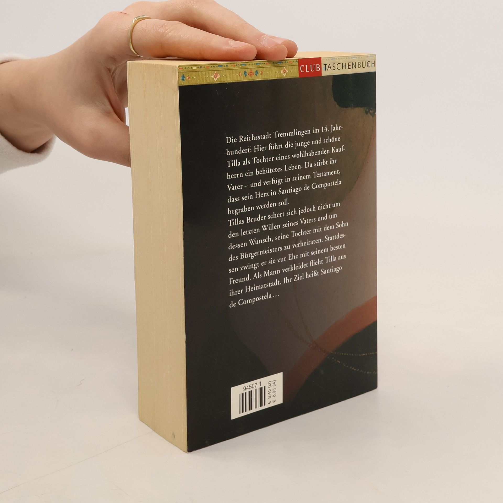 Die Reichsstadt Tremmlingen im 14.Jahrhundert: Hier führt die junge und schöne Tilla als Tochter eines wohlhabenden Kaufherrn ein behütetes Leben. Da stirbt ihr Vater - und verfügt in seinem Testament, dass sein Herz in Santiago de Compostela begraben werden soll. Tillas Bruder schert sich jedoch nicht um den Letzten Willen seines Vaters und um dessen Wunsch, seine Tochter mit dem Sohn des Bürgermeisters zu verheiraten. Stattdessen zwingt er sie zur Ehe mit seinem besten Freund. Tilla hat nur eine Chance: Sie muss fliehen! Als Mann verkleidet verlässt sie ihre Heimatstadt - im Gepäck das Herz ihres Vaters. Ihr Ziel heißt Santiago de Compostela ...