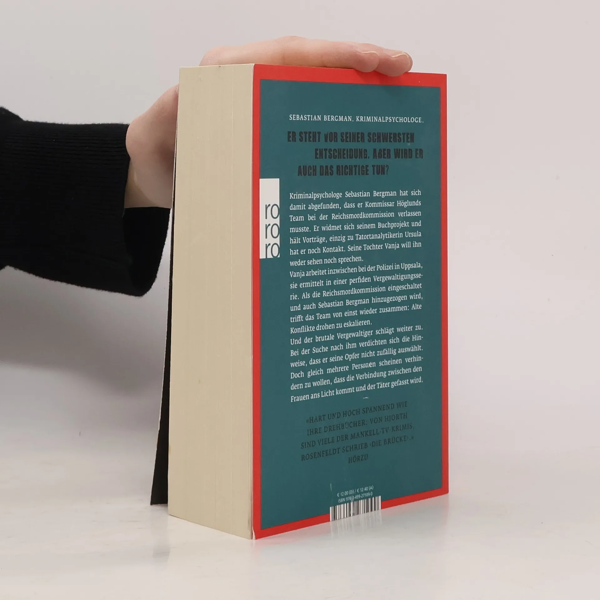 Der Nummer-1-Bestseller aus SchwedenKriminalpsychologe Sebastian Bergman hat sich damit abgefunden, dass er Kommissar Höglunds Team bei der Reichsmordkommission verlassen musste. Er widmet sich seinem Buchprojekt und hält Vorträge, einzig zu Tatortanalytikerin Ursula hat er noch Kontakt. Seine Tochter Vanja will ihn weder sehen noch sprechen. Vanja arbeitet inzwischen bei der Polizei in Uppsala, sie ermittelt in einer perfiden Vergewaltigungsserie. Als die Reichsmordkommission eingeschaltet und auch Sebastian Bergman hinzugezogen wird, trifft das Team von einst wieder zusammen: Alte Konflikte drohen zu eskalieren. Und der brutale Vergewaltiger schlägt weiter zu. Bei der Suche nach ihm verdichten sich die Hinweise, dass er seine Opfer nicht zufällig auswählt. Doch gleich mehrere Personen scheinen verhindern zu wollen, dass die Verbindung zwischen den Frauen ans Licht kommt und der Täter gefasst wird.