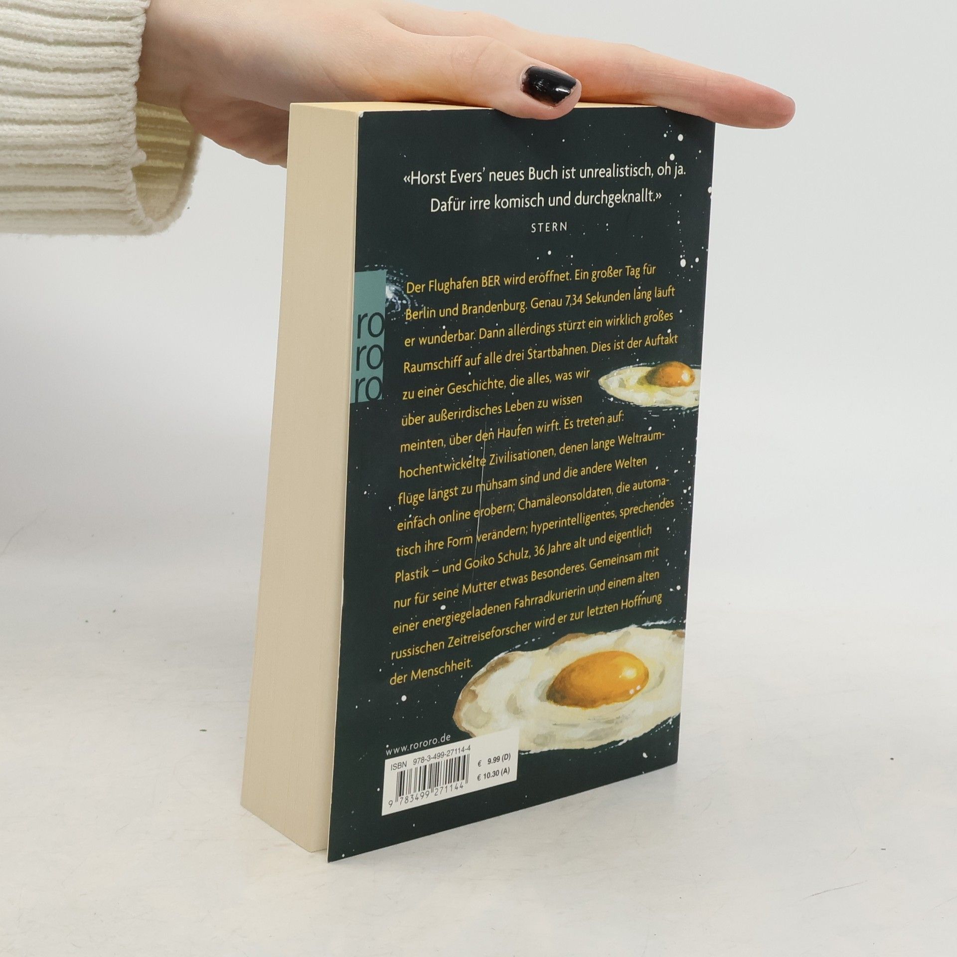 Der Flughafen BER wird eröffnet. Ein großer Tag für Berlin und Brandenburg. Genau 7,34 Sekunden lang läuft er wunderbar. Dann allerdings stürzt ein wirklich großes Raumschiff auf alle drei Startbahnen. Dies ist der Auftakt zu einer Geschichte, die alles, was wir über außerirdisches Leben zu wissen meinten, über den Haufen wirft. Es treten auf: hochentwickelte Zivilisationen, denen lange Weltraumflüge längst zu mühsam sind und die andere Welten einfach online erobern; Chamäleonsoldaten, die automatisch ihre Form verändern; hyperintelligentes, sprechendes Plastik – und Goiko Schulz, 36 Jahre alt und eigentlich nur für seine Mutter etwas Besonderes. Gemeinsam mit einer energiegeladenen Fahrradkurierin und einem alten russischen Zeitreiseforscher wird er zur letzten Hoffnung der Menschheit.