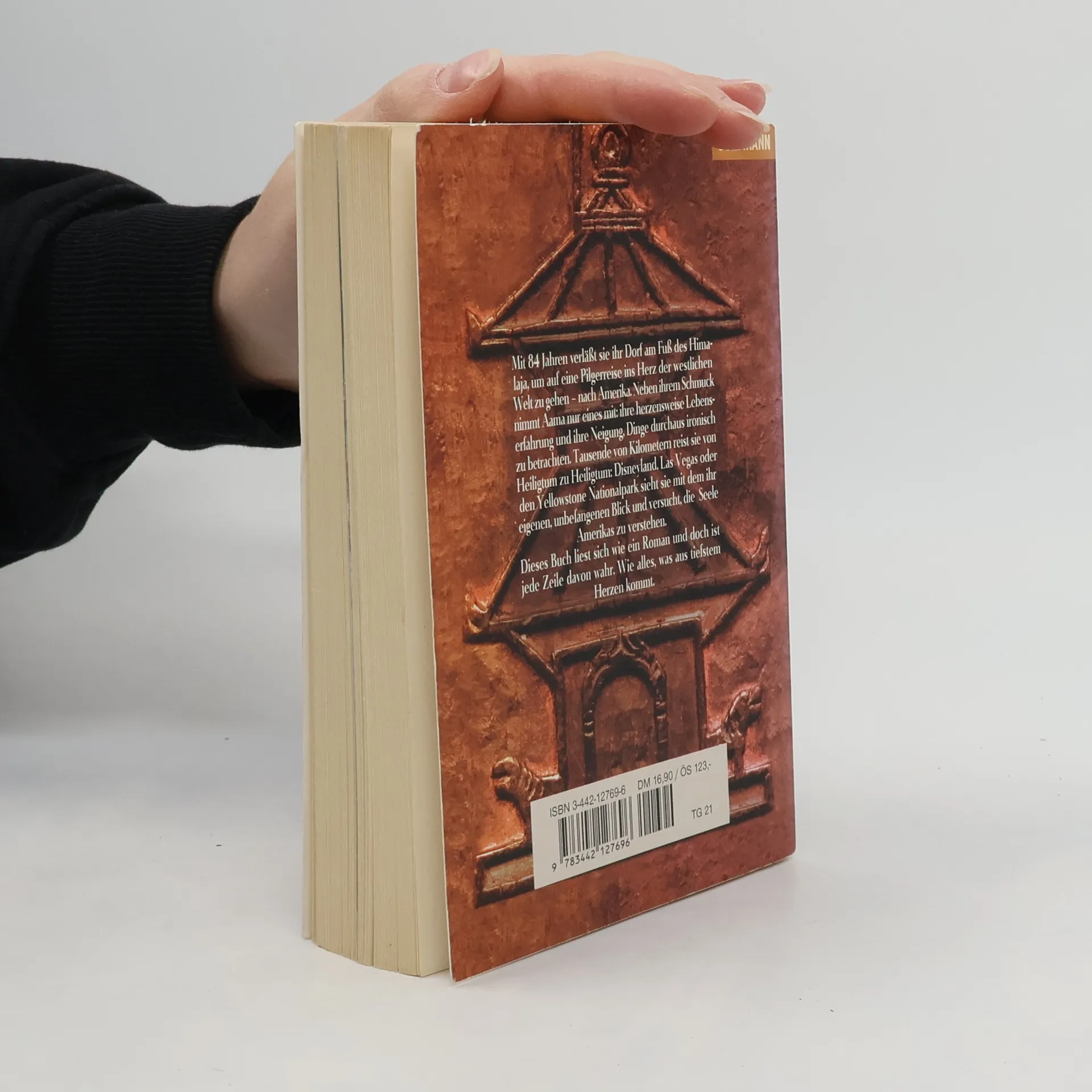 Mit vierundachtzig Jahren verlässt sie ihr Dorf am Fuß des Himalaya, um auf eine Pilgerreise ins Herz der Westlichen Welt zu gehen - nach Amerika. Neben ihrem Schmuck nimmt Aama nur eines mit: ihre herzensweise Lebenserfahrung und ihre Neigung, Dinge durchaus ironisch zu betrachten. Tausende Kilometer reist sie von Heiligtum zu Heiligtum. Disneyland, Las Vegas und den Yellowstone Nationalpark sieht sie mit dem ihr eigenen, unbefangenen Blick und versucht, die Seele Amerikas zu verstehen. Dieses Buch liest sich wie ein Roman, und doch ist jede Zeile davon wahr. Wie alles, was aus tiefstem Herzen kommt.