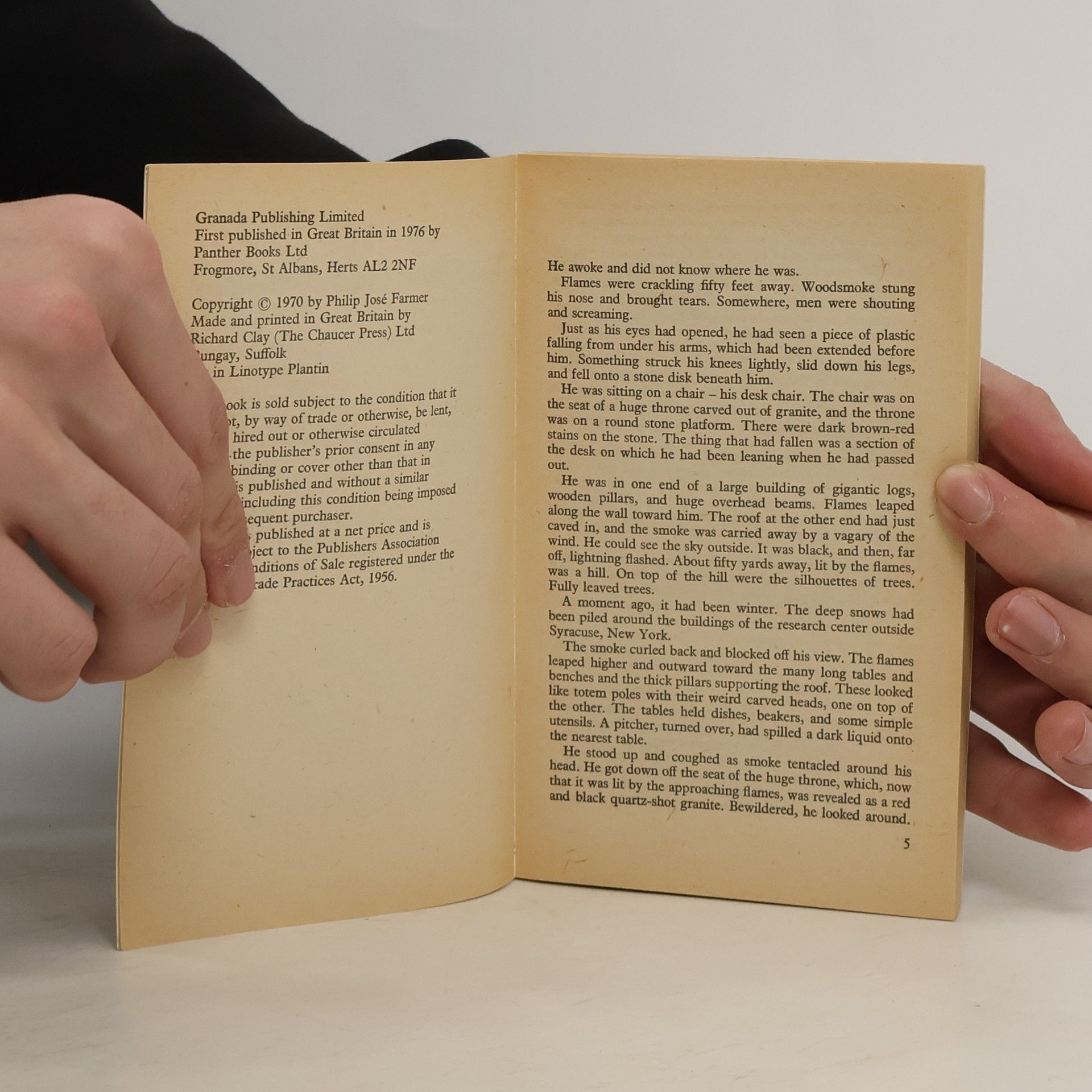 Twentieth-century scientist Ulysses Singing Bear had no idea his experiments with atomic stasis would result in a twenty-million-year journey to a world peopled by the descendants of present-day mammals. It was the world of Awina, the cat-woman who impossibly loved Ulysses. It was the planet of the mammoth continent-spanning intelligence-The Tree, whose branches touched the heavens and whose roots clasped hell-who knew that Ulysses, the newly-awakened Stone God, could destroy his reign. To enable his species to survive, Ulysses had to find a human mate. To do so, and to fulfill the single condition set by his worshippers, he had to confront The Tree. It would have been an easy task for a god, but he was only a man-and the only man at that... Originally published as an ACE paperback in 1970, The Stone God Awakens has been reprinted numerous times throughout the '70s and into the '80s, but is still one of Philip José Farmer's lesser-known works. And that is a shame because, as Danny Adams (co-author with Philip José Farmer of The City Beyond Play and Dayworld: A Hole in Wednesday) spells out in his introduction, it is "a breathless mix of adventure, intellect, and myth."