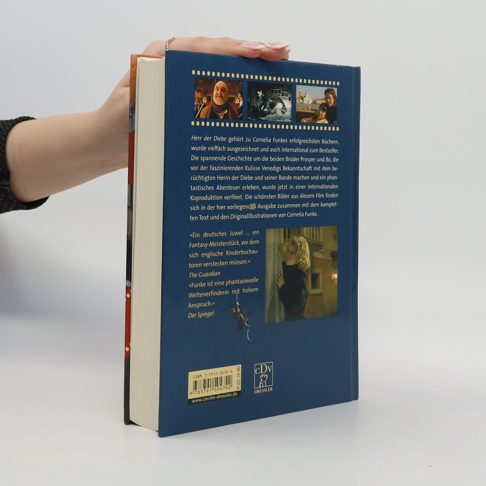 „Herr der Diebe“ mit den schönsten Fotos aus dem Kinofilm Als Prosper und Bo auf der Flucht vor ihrer Tante und dem Detektiv Victor bei einer Kinderbande in Venedig Unterschlupf finden, ahnen sie noch nicht, welches Abenteuer sie erwartet … Der Kinofilm „Herr der Diebe“, eine aufwändige internationale Produktion, entführt in die geheimnisvolle Welt von Cornelia Funkes Venedig - ein Kinoerlebnis voll atemloser Spannung! Die Romanausgabe mit Filmbildern enthält den kompletten Text, alle Originalillustrationen sowie viele farbige Fotos.