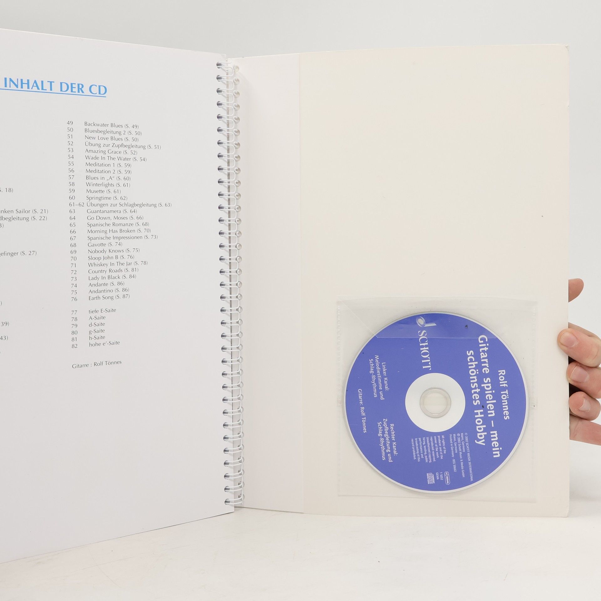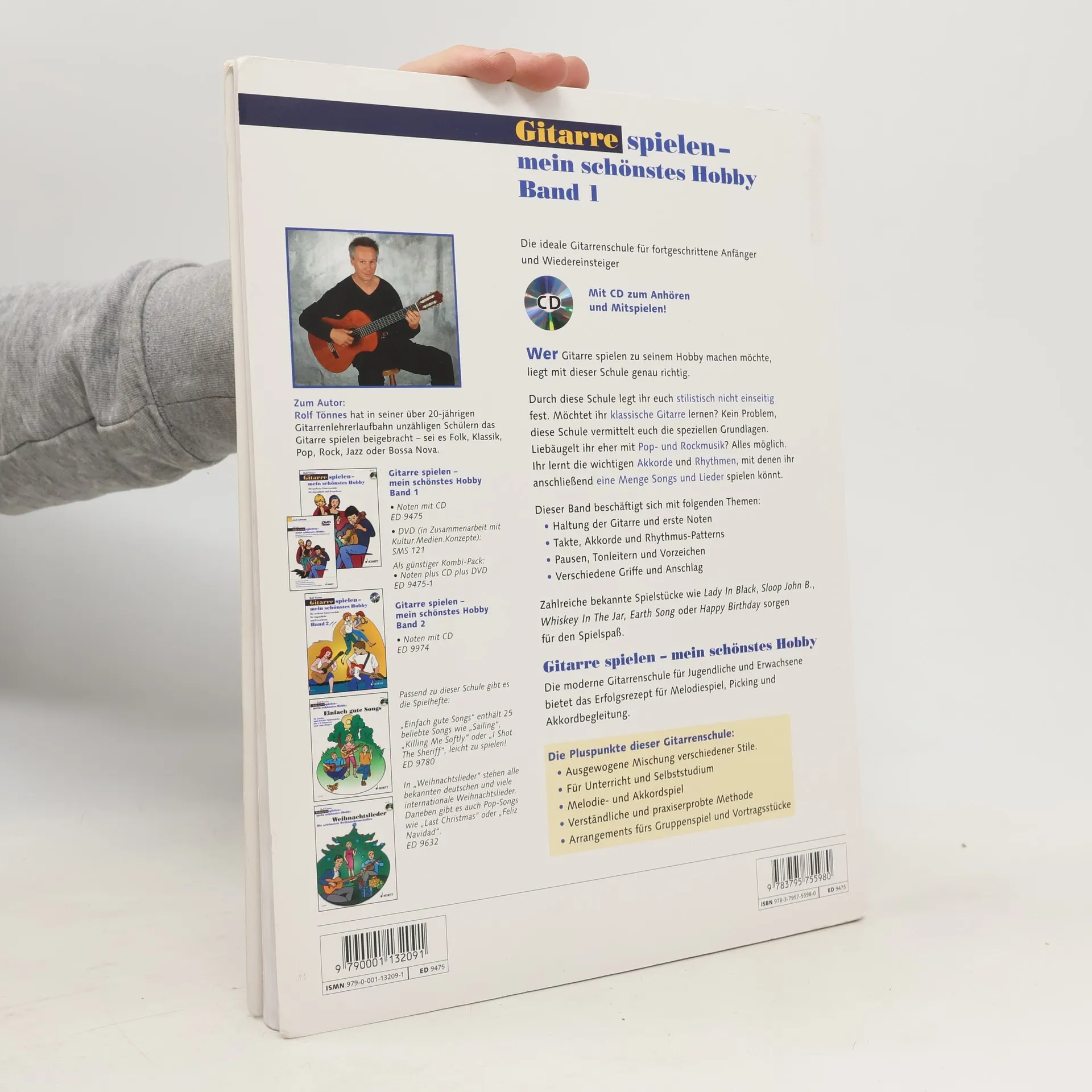 Gitarre spielen – mein schönstes Hobby wendet sich an Jugendliche und Erwachsene, die sich in ihrer Freizeit mit Musik beschäftigen wollen und eine leicht verständliche, pädagogisch durchdachte Gitarrenschule suchen. Sie vermittelt die Grundlagen zum erfolgreichen Gitarrenspiel: Melodie, Picking und Akkordbegleitung sowie die wichtigsten Akkorde und Rhythmen, damit Sie die 50 ausgewählten Folk- und Popsongs spielen können. Dort können Sie zwischen drei Mitspielmöglichkeiten auswählen: Melodie, Picking oder Rhythmus. Rolf Tönnes interessiert sich für verschiedene Musikgenres wie Rock, Blues, brasilianische Musik und Flamenco und ganz besonders den Jazz. Sein großes Interesse an Südamerika hat ihn nach Brasilien geführt, wo er 2 Jahre gelebt und mit einheimischen Musikern gespielt hat. Heute arbeitet er als Autor für Schott Music. Schwierigkeitsgrad: 1-3