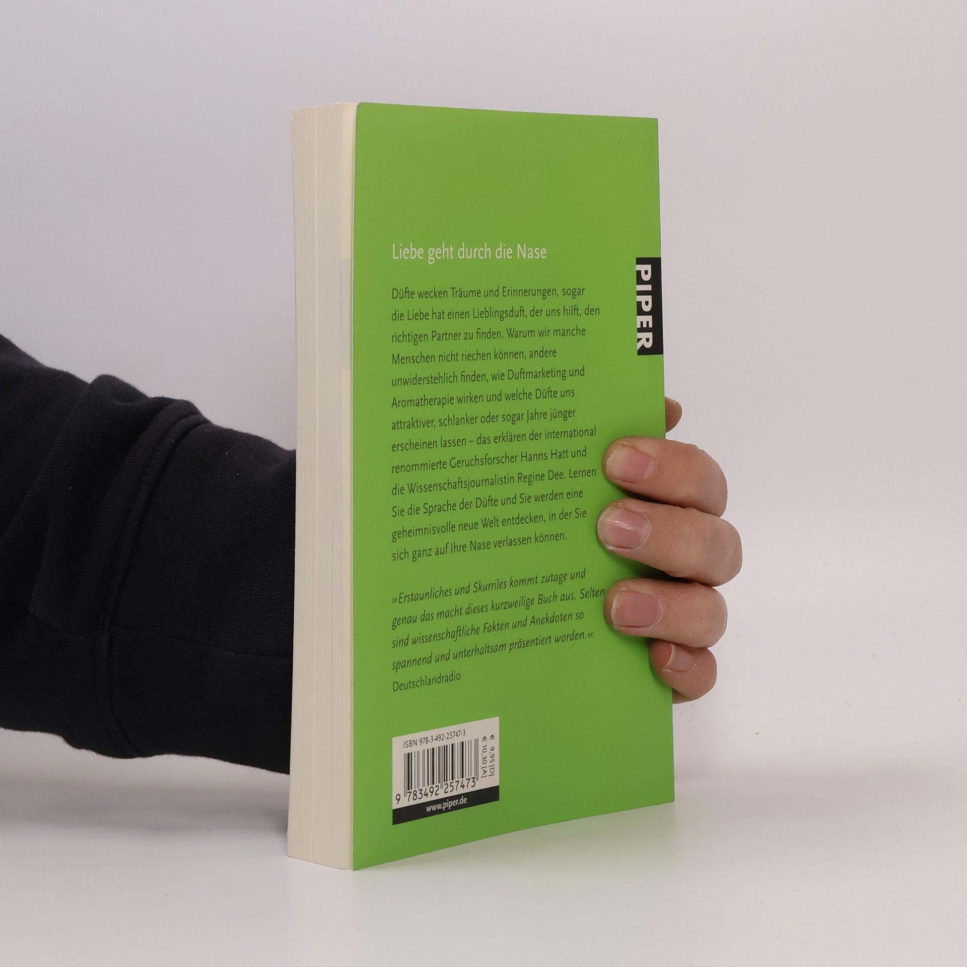 Frisch gebackenes Brot, eine Blumenwiese, ein Glas vollmundiger Rotwein – das Riechen ist der älteste der menschlichen Sinne und steuert unser Leben bis heute zentral. Der international renommierte Geruchsforscher Hanns Hatt und die Wissenschaftsjournalistin Regine Dee schildern neue, aufregende Fakten aus der Welt des Riechens: Nicht nur die Nase, unser ganzer Körper kann Gerüche spüren. Manche Düfte können sogar jünger machen. Und ohne den zarten Duft von Maiglöckchen wäre die Menschheit längst ausgestorben …