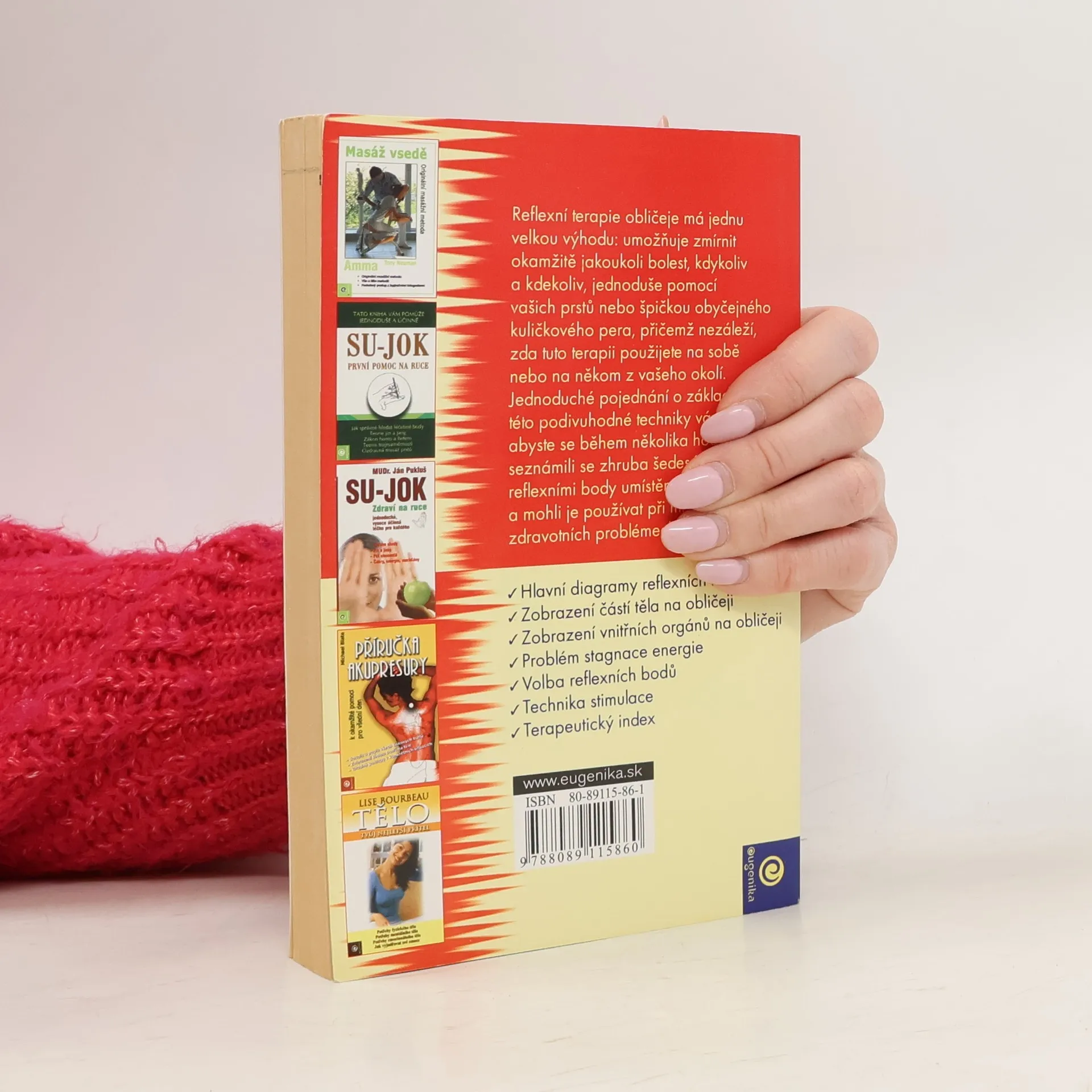 Tato prakticky zaměřená kniha je podrobnou učebnicí u nás málo známé vietnamské metody reflexní terapie obličeje zvané Dien’ Cham’. Její předností je především to, že stimulace bodů na obličeji se neprovádí akupunkturními jehlami, nýbrž jednoduše prsty nebo kulatým koncem propisovačky. Nemusíte pronikat do složitých principů teorie pěti elementů, jin-jangu ani čínské medicíny. K tomu, abyste kdykoliv, kdekoliv a během několika málo minut vyléčili sebe nebo někoho druhého, vám postačí, jestliže si nastudujete umístění zhruba šedesáti základních bodů na obličeji. Úleva se dostaví téměř okamžitě a výsledky jsou neuvěřitelné. Ve druhé části knihy je uveden podrobný rejstřík prakticky všech nemocí, u nichž jsou vždy nakresleny příslušné body v obličeji, které je třeba stimulovat. Tento druh reflexní terapie má bez nadsázky zázračné účinky. Není třeba ničemu věřit, stačí vyzkoušet.