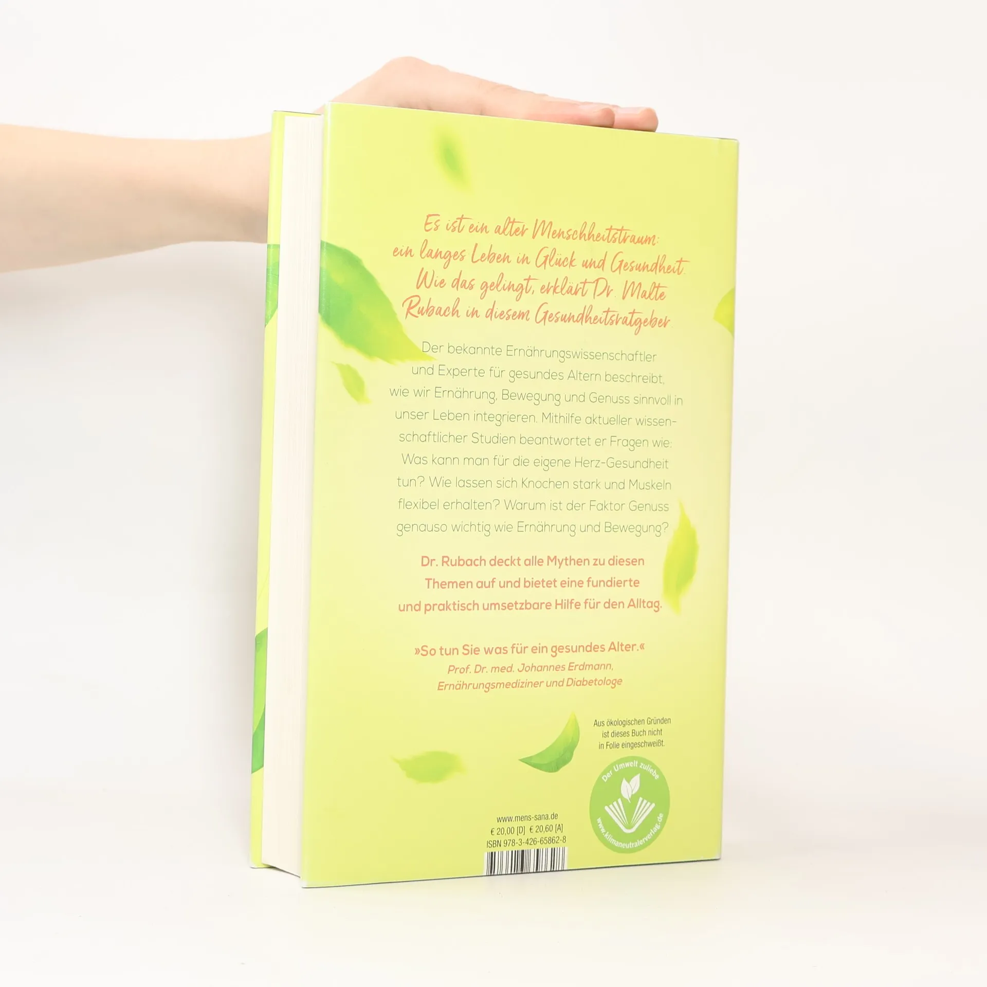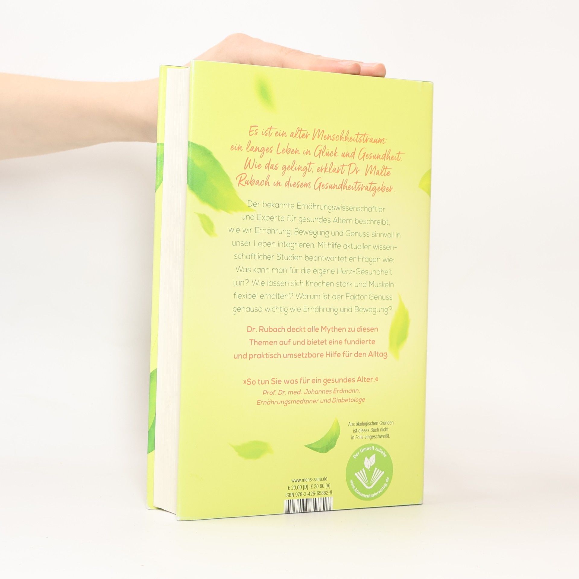 Der Ratgeber für ein langes Leben: Das ultimative Fazit aller wissenschaftlichen Studien zum Thema Gesund-Altern - mit vielen praktischen Anwendungen. Es ist ein alter Menschheitstraum: ein langes Leben in Glück und Gesundheit. Die moderne Altersforschung bietet eine ganze Reihe gesicherter Erkenntnisse, wie wir länger körperlich wie mental fit bleiben. Beides hängt eng miteinander zusammen.Wie lautet also die Wunder-Formel? Kurz gesagt: Es geht um das richtige Maß an Ernährung, Bewegung und Genuss. Der gefragte promovierte Ernährungswissenschaftler und Experte für gesundes Altern Dr. Malte Rubach erklärt in seinem neuen Gesundheits-Ratgeber mithilfe aller aktuellen wissenschaftlichen Studien, wie es gelingt, gesund und glücklich alt zu werden. Was kann man zum Beispiel für die eigene Herz-Gesundheit tun? Wie lassen sich Knochen stark und Muskeln flexibel und voller Energie erhalten? Warum ist der Faktor Genuss genauso wichtig wie Ernährung und Bewegung? Dr. Rubach deckt alle Mythen zum Thema „Gesund altern“ auf: Weshalb leben die Menschen in den sogenannten Blue Zones der Welt wirklich länger? Verkürzt der Konsum von tierischen Produkten das Leben tatsächlich? Diesen und vielen weiteren Fragen geht er auf den Grund. Fundiert und praktisch umsetzbar mit Hilfe von kleinen Übungen für den Alltag bietet er eine kompakte Essenz des aktuellen Forschungsstands.
