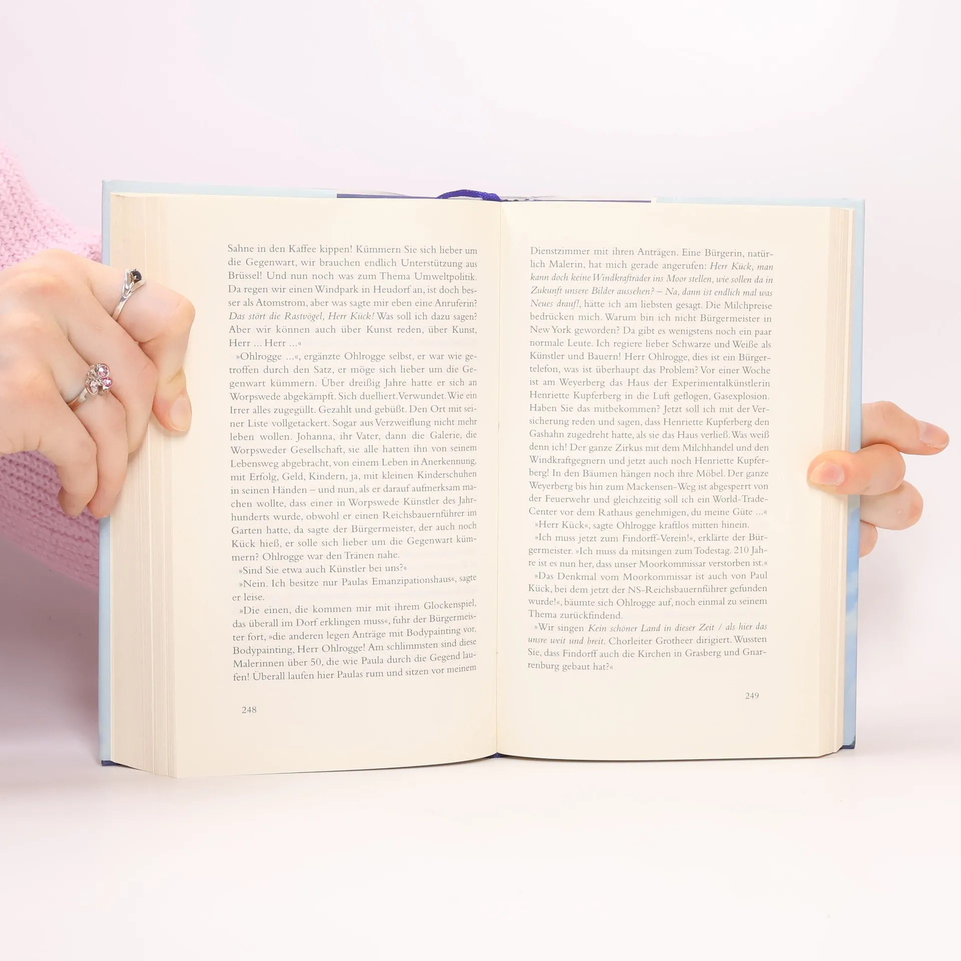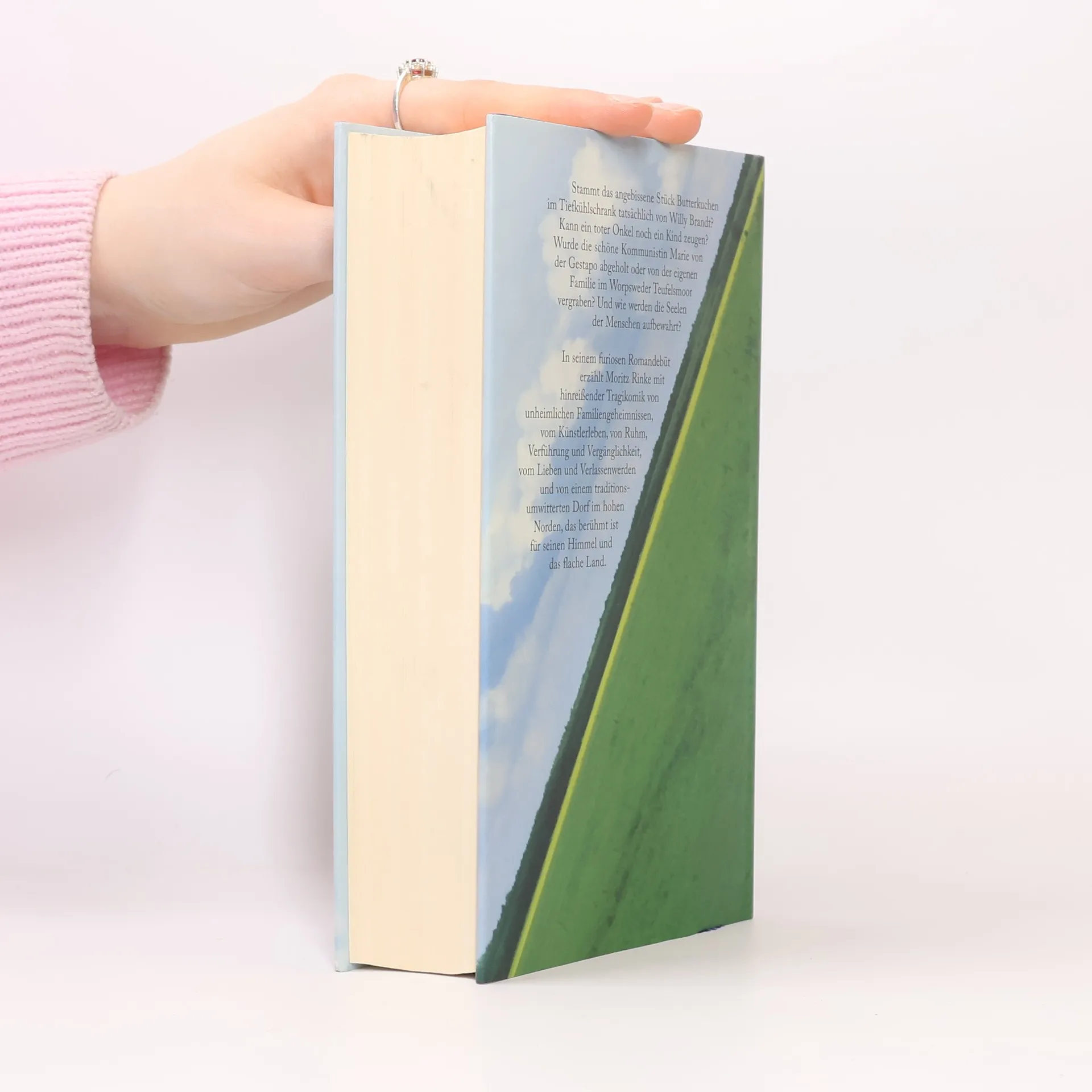 Stammt das angebissene Stück Butterkuchen im Tiefkühlschrank tatsächlich von Willy Brandt? Kann ein toter Onkel noch ein Kind zeugen? Wurde die schöne Kommunistin Marie von der Gestapo abgeholt oder von der eigenen Familie im Teufelsmoor vergraben? Und wie werden die Seelen der Menschen aufbewahrt? Paul Wendland möchte in Berlin mit seinem Leben und seinen kuriosen Kunstprojekten neu anfangen, doch die Vergangenheit holt ihn ein. In Worpswede drohen das geschichtsträchtige Haus seines Großvaters und sein Erbe im Moor zu versinken – samt lebensgroßen Bronzestatuen von Luther, Bismarck, Max Schmeling und Ringo Starr. Die Rückkehr an den Ort seiner Kindheit, geprägt von einem mörderischen Teufelsmoor und norddeutschem Butterkuchen, nimmt eine verhängnisvolle Wendung. Vergessen geglaubte Familienfragen und historische Gestalten, die aus dem Moor steigen, sowie die skurrile Begegnung mit einem mysteriösen Vergangenheitsforscher bringen ein Netz aus Lügen und Geheimnissen ans Licht. Moritz Rinke behandelt mit sanfter, anarchischer Tragikomik die Lebensmotive, Geschlechter-, Generations- und Identitätskonflikte seiner Figuren. Er erzählt vom Künstlerleben, Ruhm, Verführung und Vergänglichkeit in einem berühmten Dorf im Norden, das für seinen Himmel und das flache Land bekannt ist, und überzeugt als raffinierter Komponist einer überschäumenden, irrwitzigen Realität.