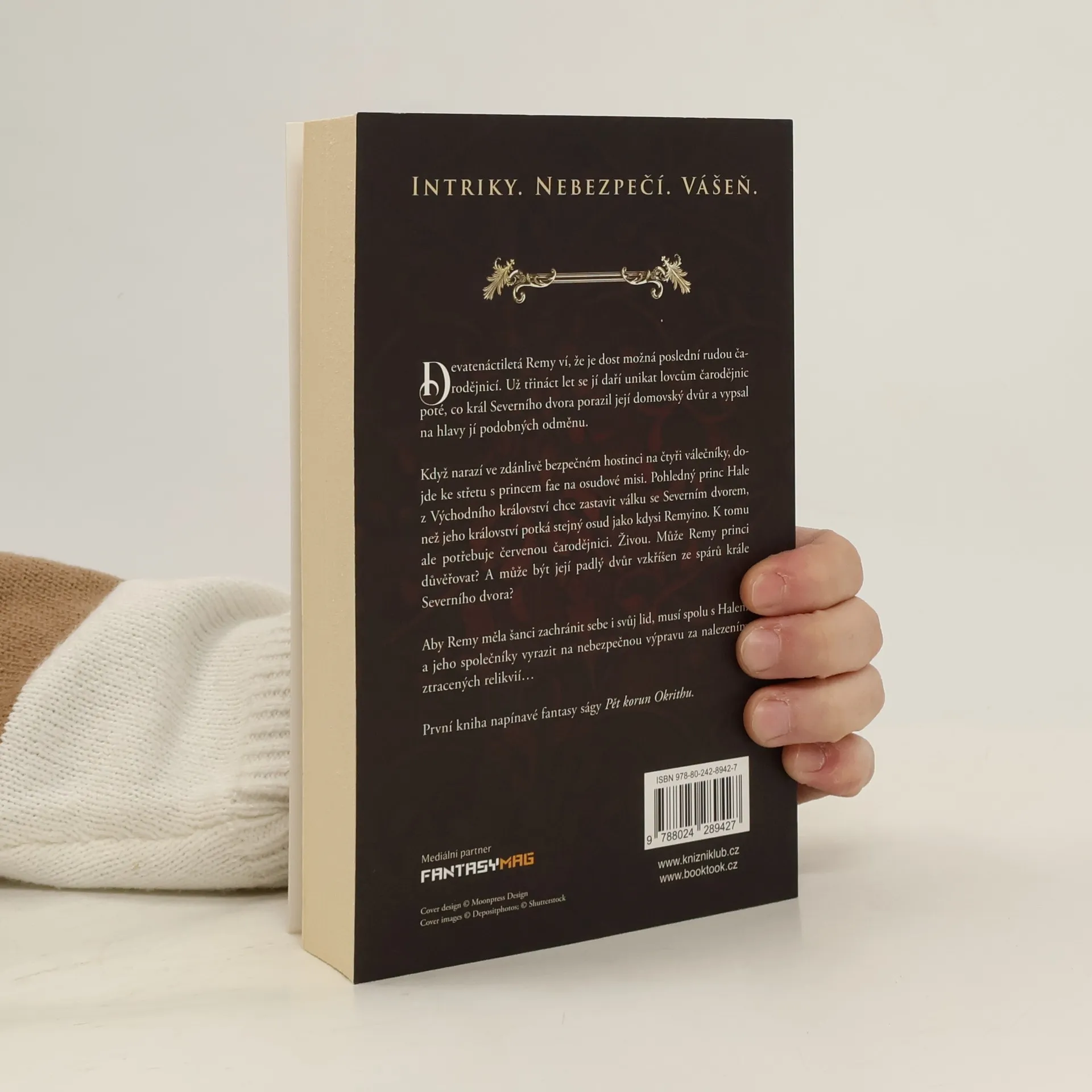 Vzrušující TikTok senzace od A.K. Mulford - plná romantiky, intrik, magie a vášně. První kniha série Pět korun Okrithu začíná cestu uprchlé rudé čarodějnice Remy, která bojuje o získání zpět svého království a objevování toho, co skrývá její srdce.Devatenáctiletá Remy ví, že je poslední živoucí rudou čarodějnicí a rozhodla se, že to tak zůstane. Nicméně, král Severního dvora, který povraždil její rodinu, má jiné plány a chce vyhubit její druh, dokud nezůstane nikdo.Když se do jejího útočiště v hospodě dostanou čtyři vílí válečníci, Remy se snaží uprchnout, ale její magie není dostatečně silná, aby zastavila tvrdohlavého - a pohledného - Prince Halea z Východního království. Tvrdí, že chce zabránit válce s Severním dvorem, než jeho království dopadne stejně jako Remyino. K tomu ale potřebuje rudou čarodějnici...a Remy je poslední svého druhu.Přestože se k němu cítí přitahována, neví, zda mu může důvěřovat. Ale pro šanci zachránit sama sebe, svůj lid a zbavit svět vražedného tyrana, musí Remy vložit svou víru do Hala a jeho společníků při nebezpečné cestě za ztracenými relikviemi...a zjistit, zda je připravená zajistit své dědictví.