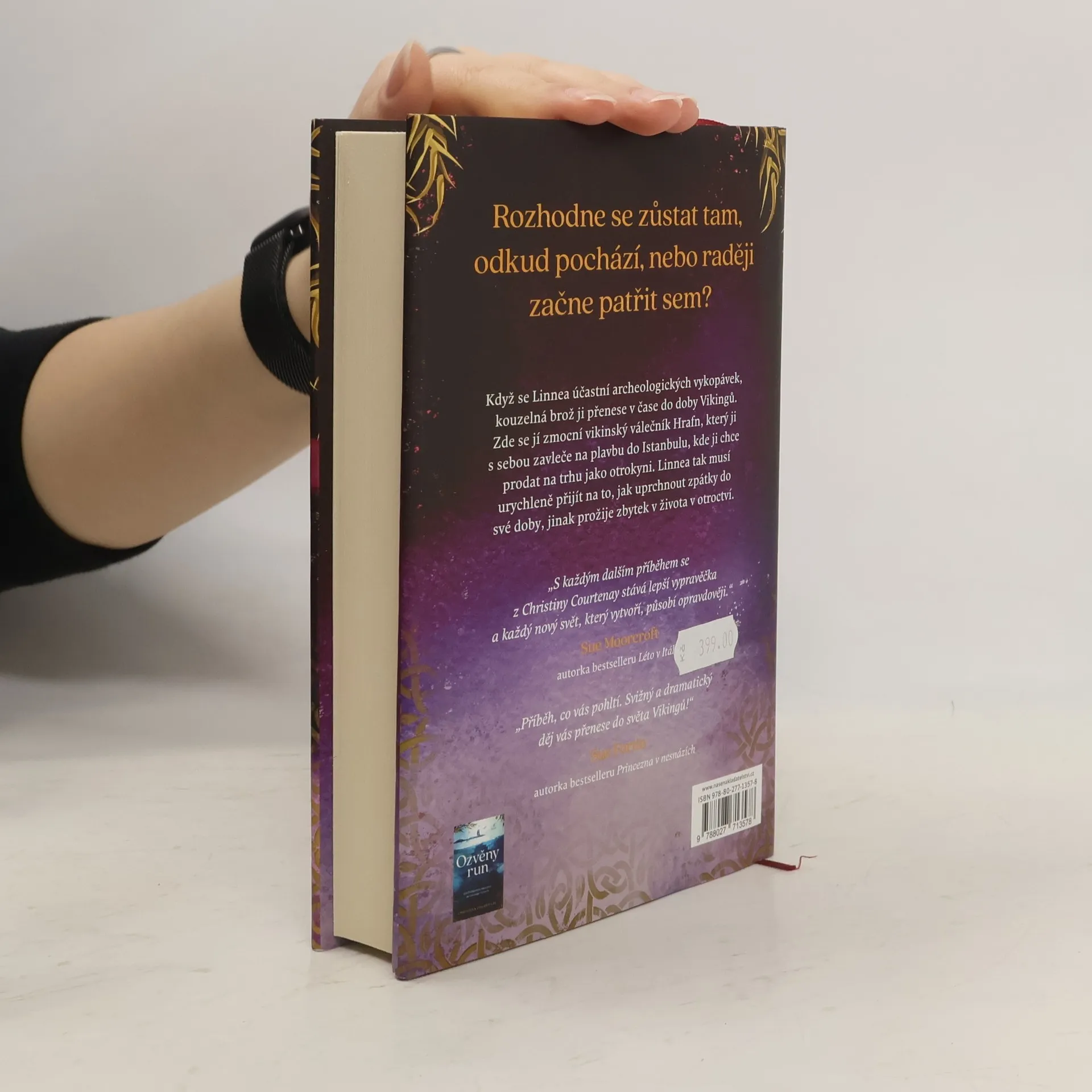Oddat se svému nadšení pro jazyk Vikingů a nechat se pohltit prací na archeologických vykopávkách je přesně to pravé, co Linnea Bergerová po nedávné traumatické události potřebuje. Když objeví krásnou brož a přečte nápis, který je na ni vyrytý, ztratí vědomí a probere se uprostřed skupiny mužů převlečených za Vikingy, kteří podle všeho berou svou hru na středověk velice vážně.Ztracená a zmatená Linnea se ocitne v moci Hrafna, vikinského válečníka, který si ji nárokuje jako svou kořist a zavleče ji na nebezpečnou plavbu přes moře, aby ji prodal jako otrokyni. Po vyplutí musí čelit nemyslitelnému: cestovala časem a ocitla se v devátém století.Linnea je rozhodnutá vrátit se zpátky do svojí doby, ale mezi ní a Hrafnem se začíná utvářet pouto. Dokáže odolat volání run a přijmout, že její osud je tady?