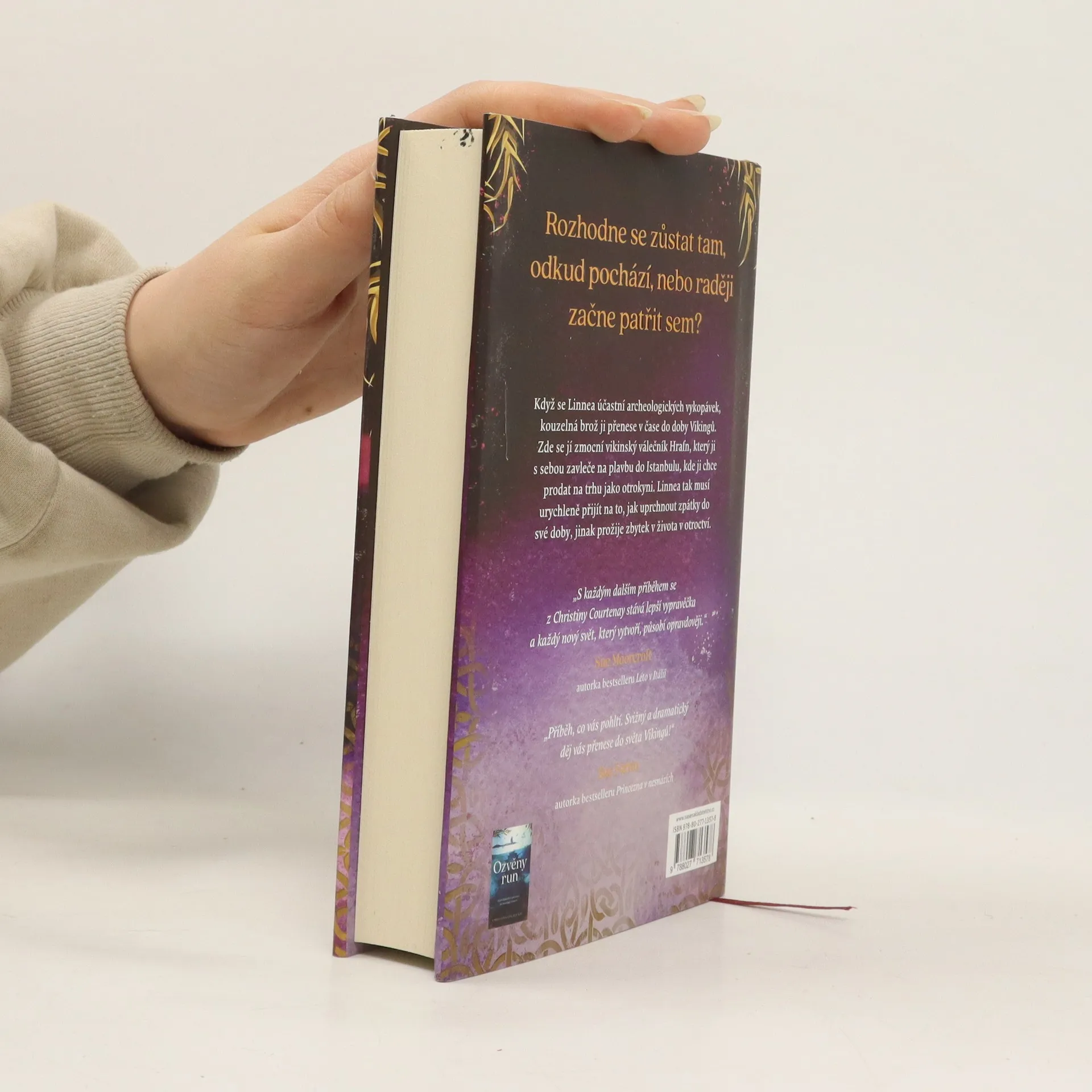 Oddat se svému nadšení pro jazyk Vikingů a nechat se pohltit prací na archeologických vykopávkách je přesně to pravé, co Linnea Bergerová po nedávné traumatické události potřebuje. Když objeví krásnou brož a přečte nápis, který je na ni vyrytý, ztratí vědomí a probere se uprostřed skupiny mužů převlečených za Vikingy, kteří podle všeho berou svou hru na středověk velice vážně.Ztracená a zmatená Linnea se ocitne v moci Hrafna, vikinského válečníka, který si ji nárokuje jako svou kořist a zavleče ji na nebezpečnou plavbu přes moře, aby ji prodal jako otrokyni. Po vyplutí musí čelit nemyslitelnému: cestovala časem a ocitla se v devátém století.Linnea je rozhodnutá vrátit se zpátky do svojí doby, ale mezi ní a Hrafnem se začíná utvářet pouto. Dokáže odolat volání run a přijmout, že její osud je tady?