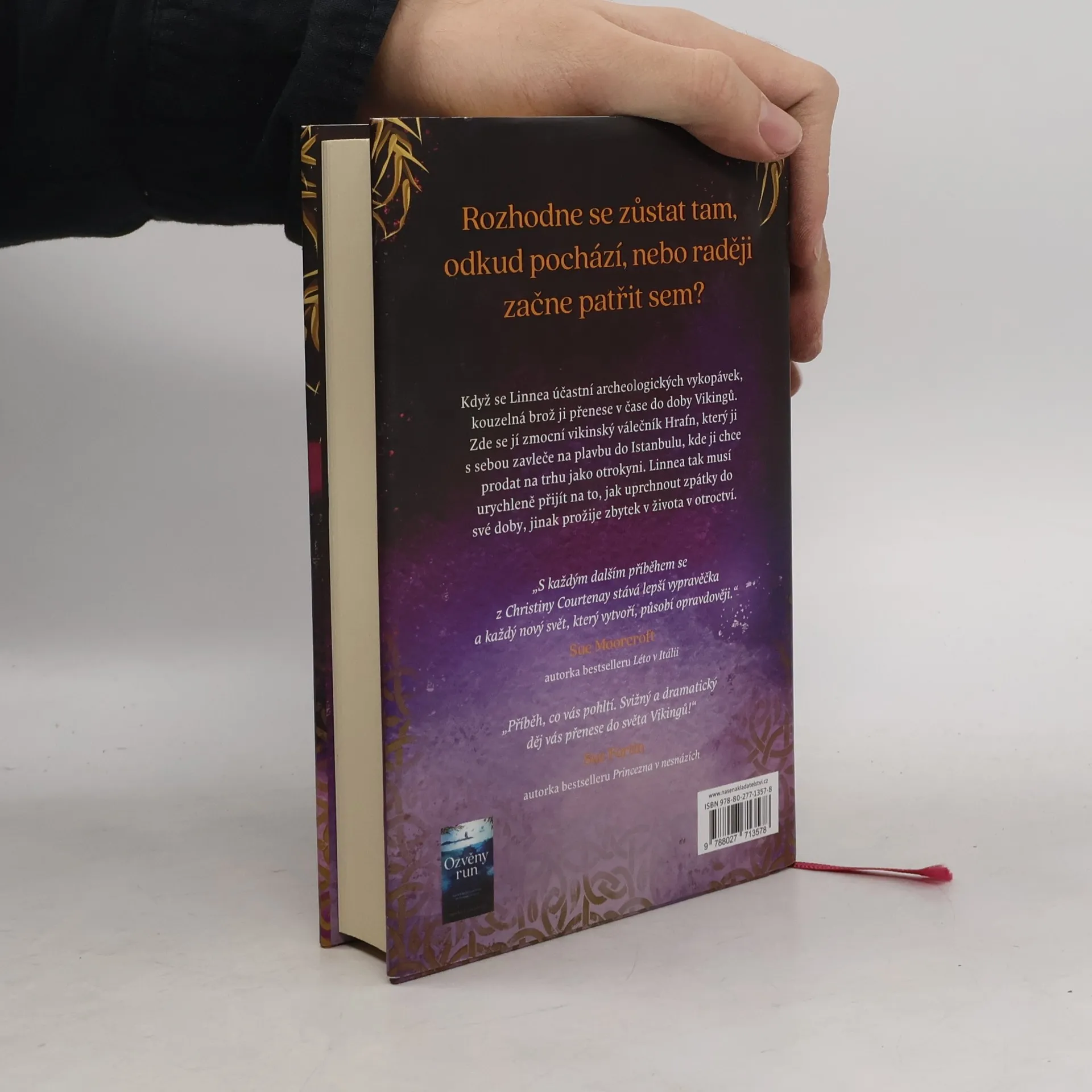 Oddat se svému nadšení pro jazyk Vikingů a nechat se pohltit prací na archeologických vykopávkách je přesně to pravé, co Linnea Bergerová po nedávné traumatické události potřebuje. Když objeví krásnou brož a přečte nápis, který je na ni vyrytý, ztratí vědomí a probere se uprostřed skupiny mužů převlečených za Vikingy, kteří podle všeho berou svou hru na středověk velice vážně.Ztracená a zmatená Linnea se ocitne v moci Hrafna, vikinského válečníka, který si ji nárokuje jako svou kořist a zavleče ji na nebezpečnou plavbu přes moře, aby ji prodal jako otrokyni. Po vyplutí musí čelit nemyslitelnému: cestovala časem a ocitla se v devátém století.Linnea je rozhodnutá vrátit se zpátky do svojí doby, ale mezi ní a Hrafnem se začíná utvářet pouto. Dokáže odolat volání run a přijmout, že její osud je tady?
