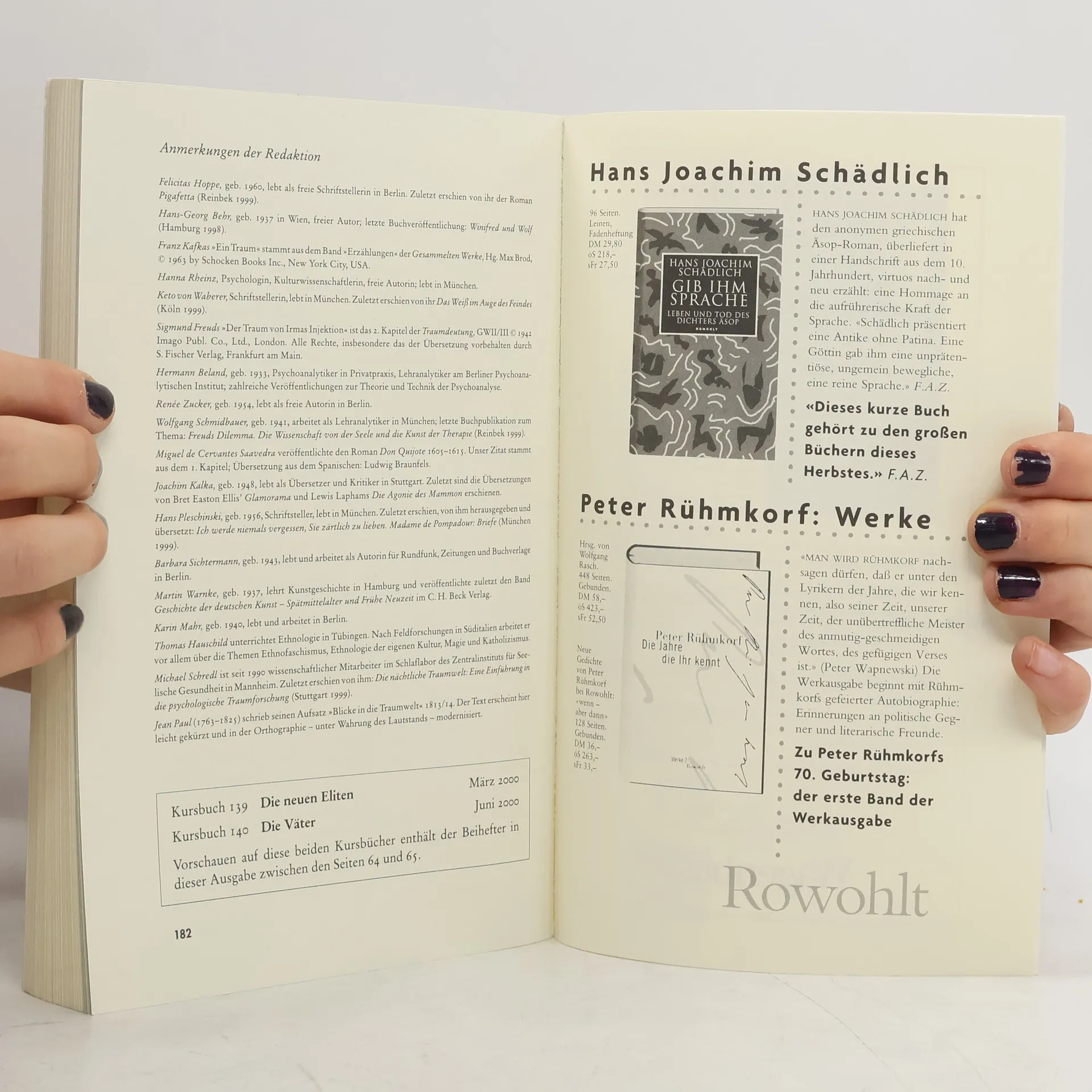 Kursbuch Heft 138: Träume, Felicitas Hoppe, Hans Georg Behr, Hanna Rheinz, Keto v. Waberer