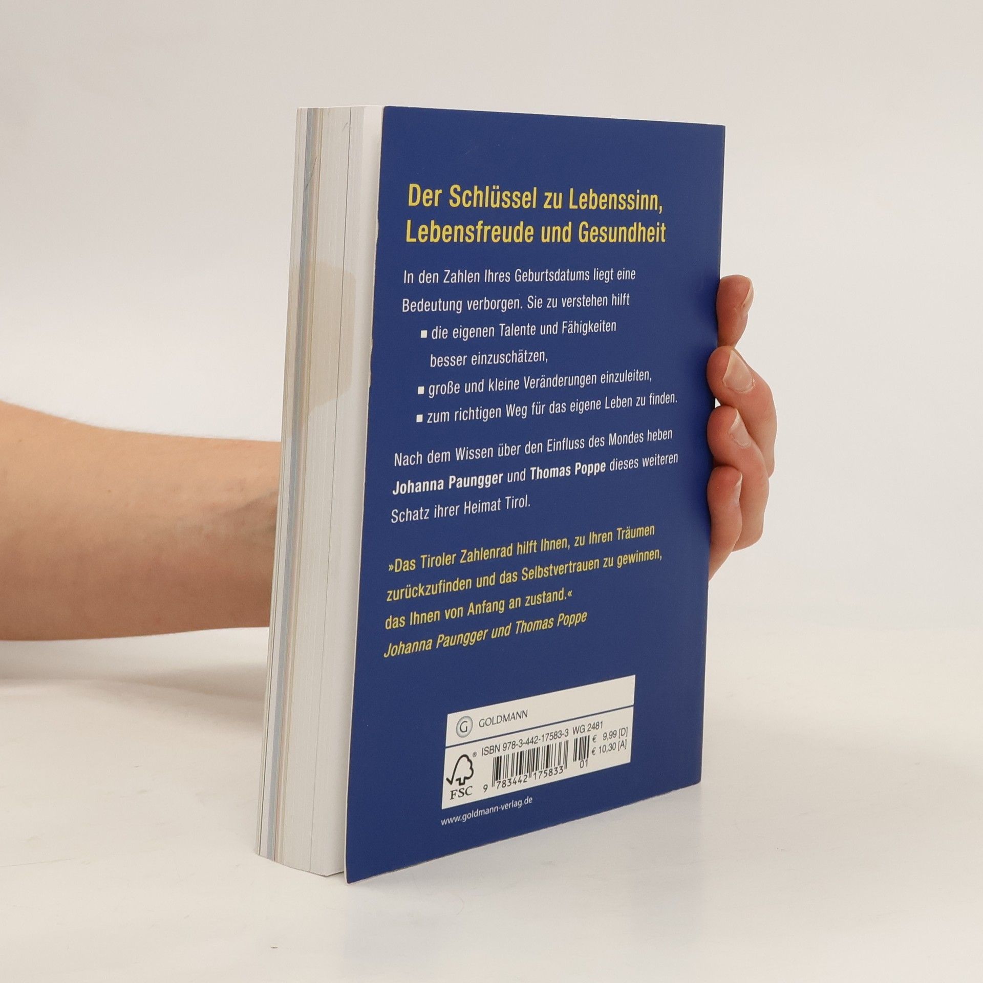 Der Schlüssel zu Lebenssinn, Lebensfreude und Gesundheit Nach dem Wissen über den Einfluss des Mondes heben Johanna Paungger und Thomas Poppe einen weiteren verschollenen Traditionsschatz ihrer Heimat: Sie verraten, welche Bedeutung in den Zahlen unseres Geburtsdatums verborgen liegt. Das große Tiroler Zahlenrad gibt Auskunft darüber, wie man seine Talente und Fähigkeiten besser einschätzen, große und kleine Veränderungen einleiten und zum richtigen Weg für sein Leben finden kann. Ausstattung: durchgehend 4-farbig