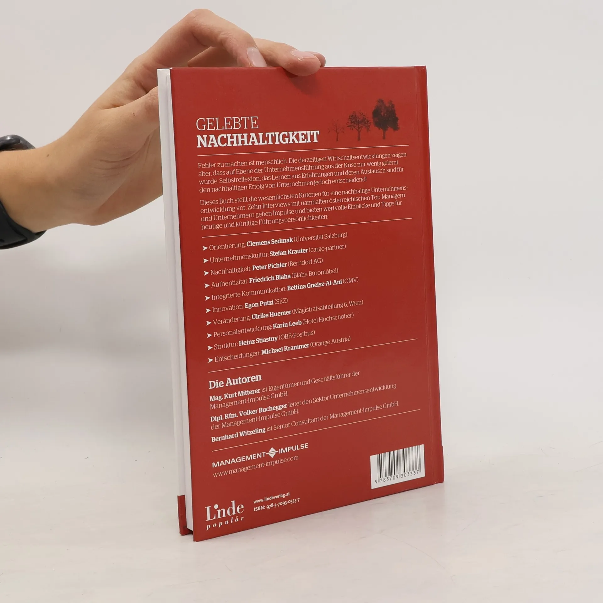 Gelebte Nachhaltigkeit, Kurt Mitterer, Volker Buchegger, Bernhard Witzeling