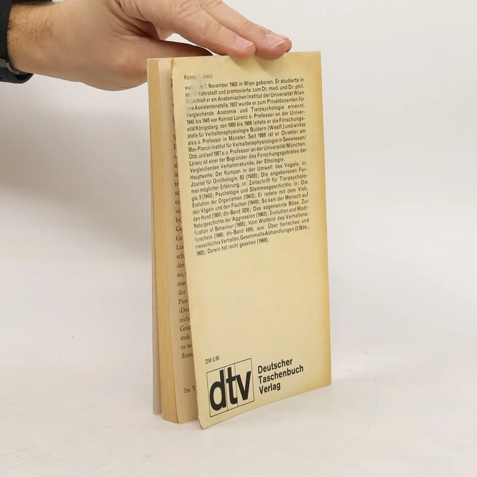 Konrad Lorenz erzählt mit der liebenden Zuneigung des Tierfreundes von den Lebensgewohnheiten seiner zwei- und vierbeinigen Gefährten und stellt fest: »...nicht, dass der Mensch ein Viech ist. Aber gewisse Grundgesetzlichkeiten instinktiven Verhaltens gelten für Tiere wie für Menschen.«