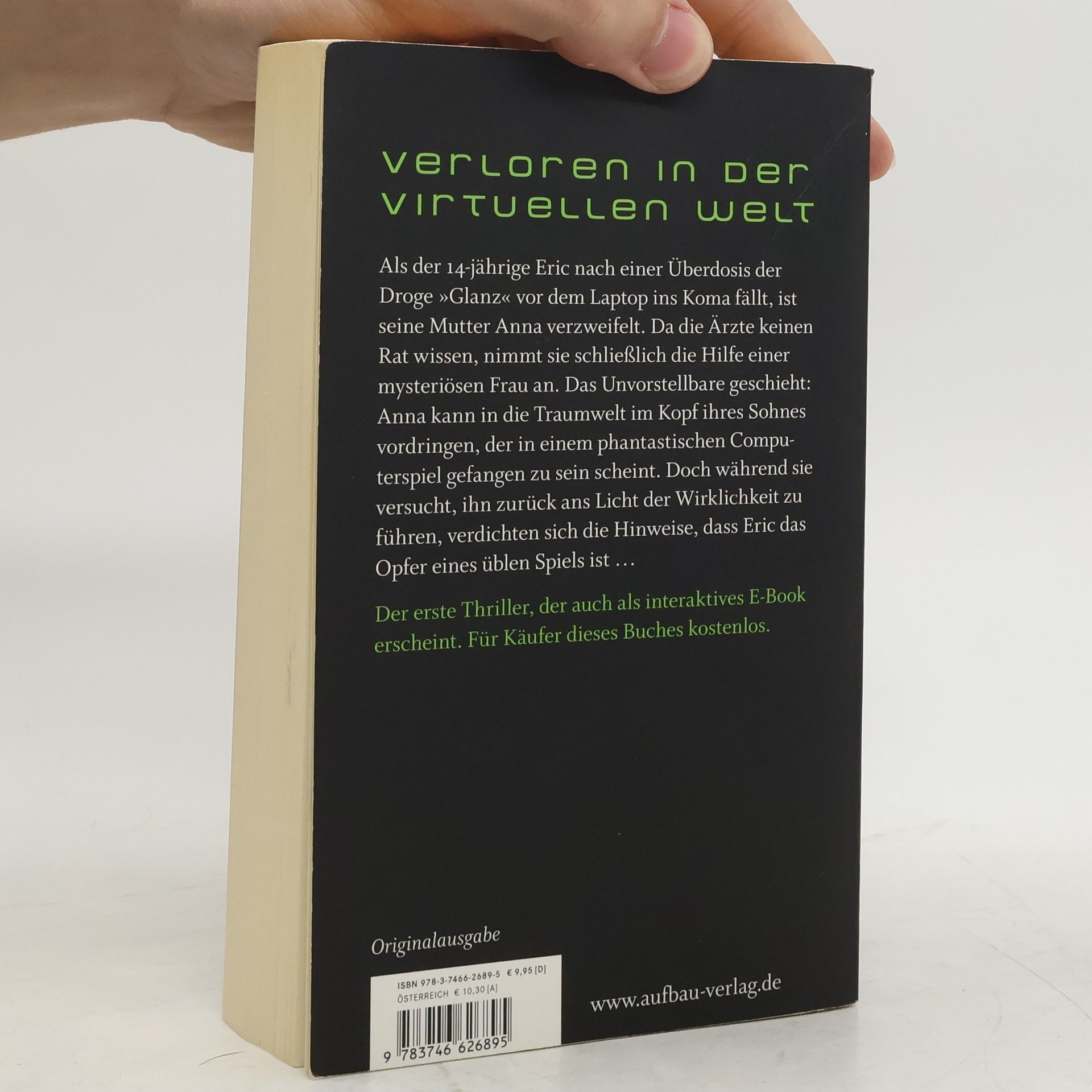 Verloren in der virtuellen Welt Als der 14-jährige Eric nach einer Überdosis der Droge »Glanz« vor dem Laptop ins Koma fällt, ist seine Mutter Anna verzweifelt. Da die Ärzte keinen Rat wissen, nimmt sie schließlich die Hilfe einer mysteriösen Frau an. Das Unvorstellbare geschieht: Anna kann in die Traumwelt im Kopf ihres Sohnes vordringen, der in einem phantastischen Computerspiel gefangen zu sein scheint. Doch während sie versucht, ihn zurück ans Licht der Wirklichkeit zu führen, verdichten sich die Hinweise, dass Eric das Opfer eines üblen Spiels ist …