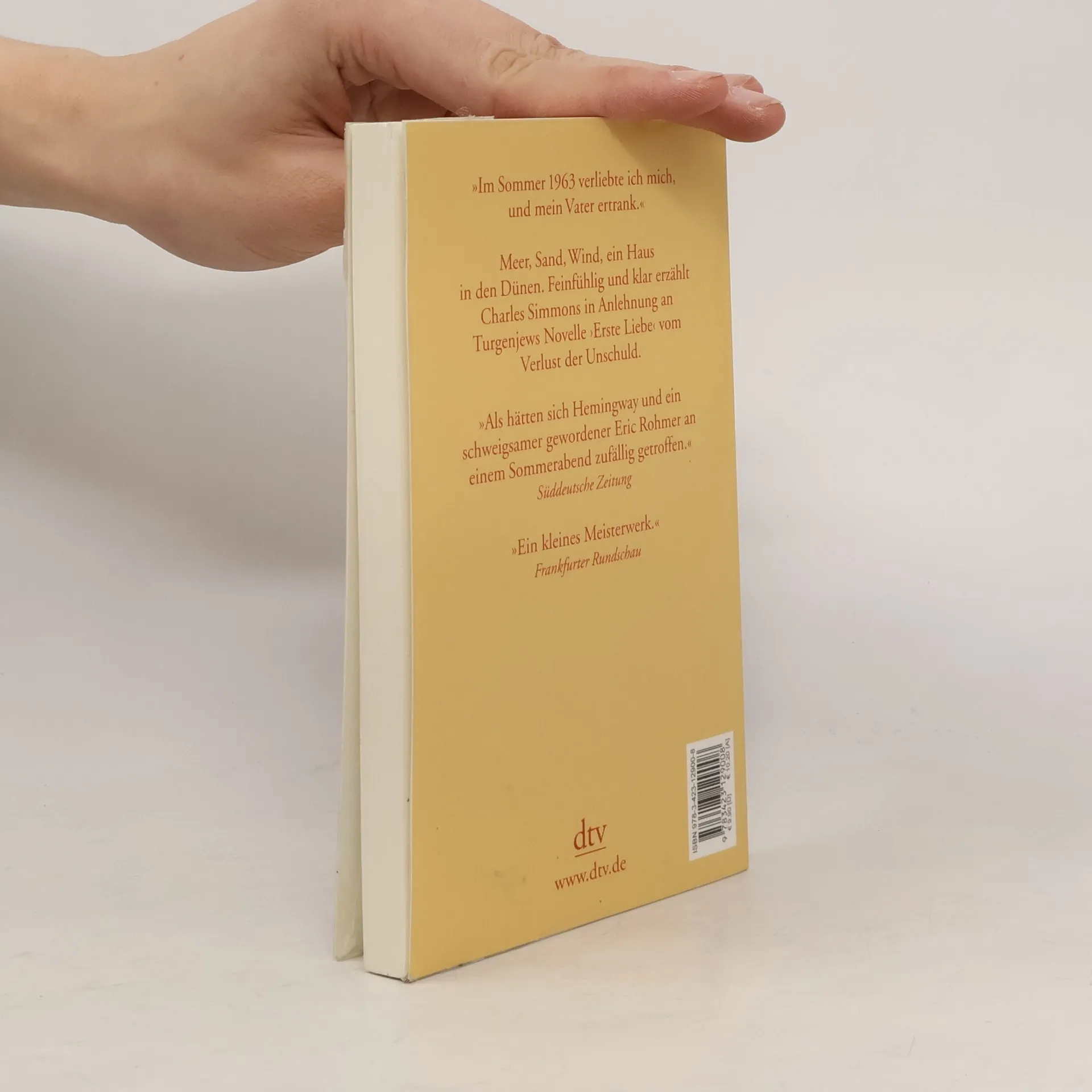 Meer, Sand, Wind, ein Haus in den Dünen Wie jedes Jahr verbringt Michael den Sommer mit seinen Eltern am Atlantik. Doch diesmal gibt es eine Veränderung: Ins Nachbarhaus zieht die verführerische Mrs. Mertz mit ihrer zwanzigjährigen Tochter Zina ein. Die Offenheit der beiden Frauen fasziniert nicht nur Michael. Augenblicklich verliebt er sich in die schöne Zina und ist ihren Kaprizen hilflos ausgeliefert. Als er jedoch seine romantischen Gefühle grausam verraten sieht, bricht für Michael die unschuldige Welt seiner Kindheit zusammen. In Anlehnung an Iwan Turgenjews Novelle „Erste Liebe“ erzählt Charles Simmons mit psychologischem Feingefühl und einer ganz eigenen Leichtigkeit vom Schmerz des Erwachsenwerdens.
