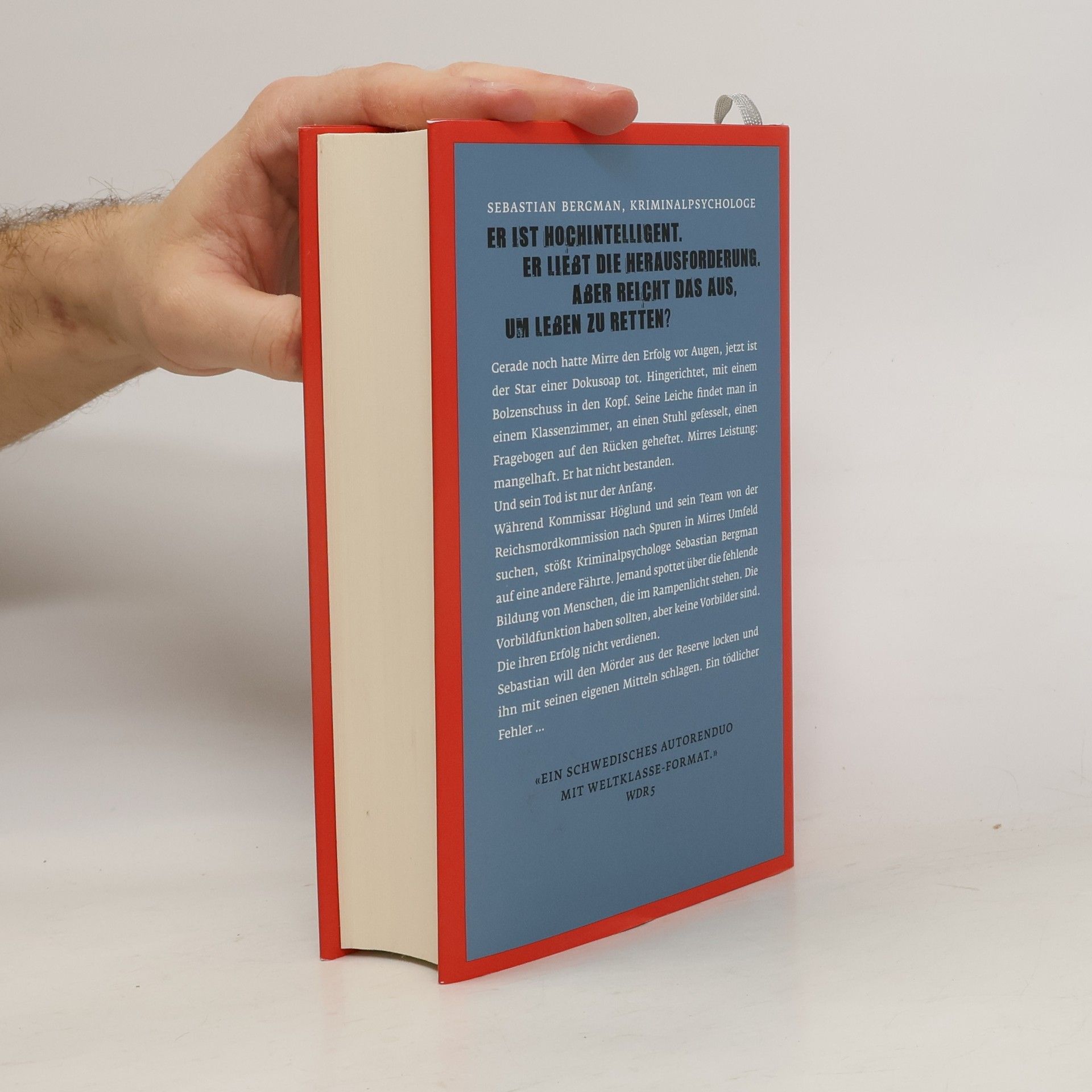 Er ist hochintelligent. Er liebt die Herausforderung. Aber reicht das aus, um Leben zu retten? Gerade noch hatte Mirre den Erfolg vor Augen, jetzt ist der Star einer Dokusoap tot. Hingerichtet, mit einem Bolzenschuss in den Kopf. Seine Leiche findet man in einem Klassenzimmer, an einen Stuhl gefesselt, einen Fragebogen auf den Rücken geheftet. Mirres Leistung: mangelhaft. Er hat nicht bestanden. Und sein Tod ist nur der Anfang. Während Kommissar Höglund und sein Team von der Reichsmordkommission nach Spuren in Mirres Umfeld suchen, stößt Kriminalpsychologe Sebastian Bergman auf eine andere Fährte. Jemand spottet über die fehlende Bildung von Menschen, die im Rampenlicht stehen. Die Vorbildfunktion haben sollten, aber keine Vorbilder sind. Die ihren Erfolg nicht verdienen.Sebastian will den Mörder aus der Reserve locken und ihn mit seinen eigenen Mitteln schlagen. Ein tödlicher Fehler... Platz 2 der Spiegel-Bestsellerliste
