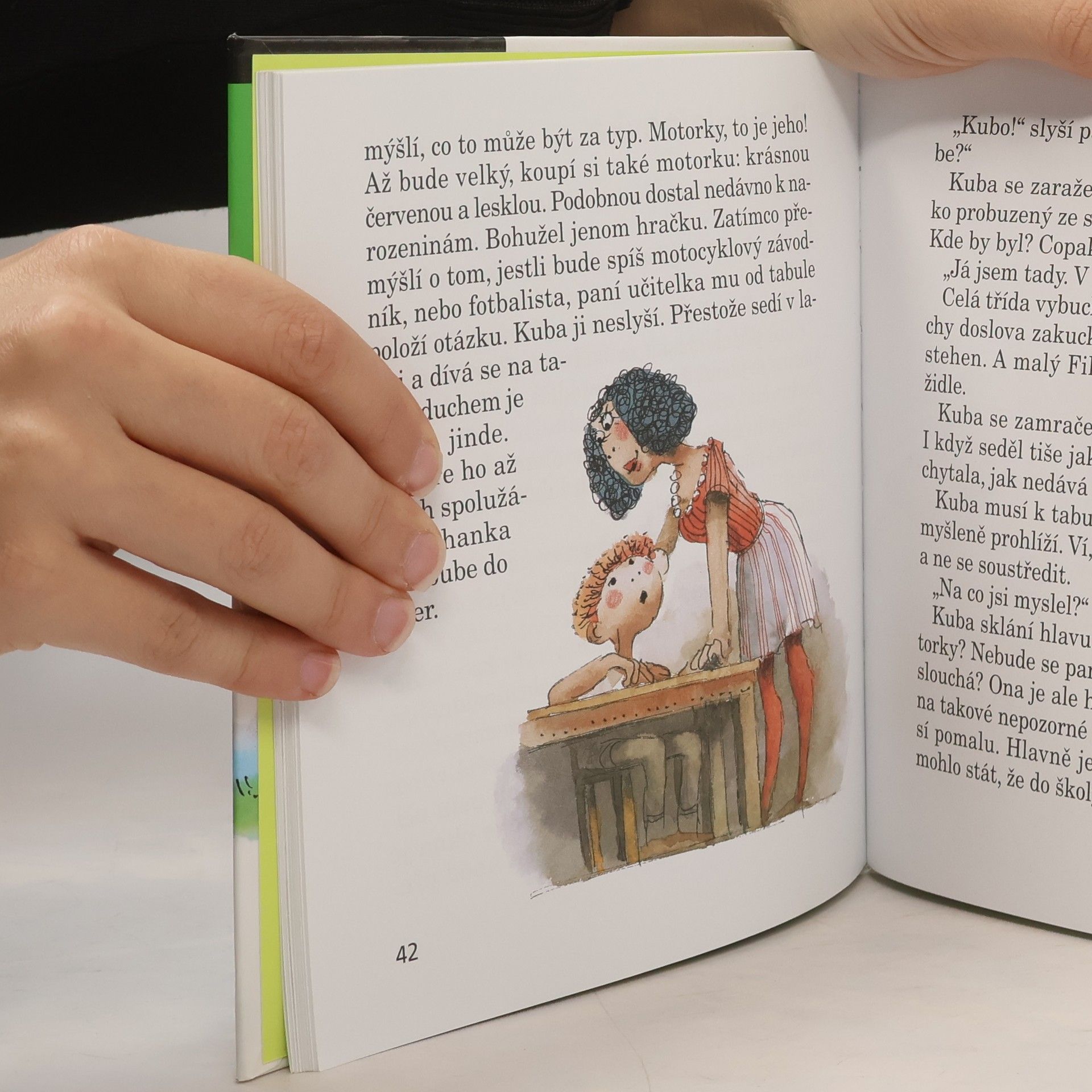 Kuba nechce číst, psát ani počítat. Do první třídy se mu vůbec nechtělo. Co si však počít s žáčkem, kterému se v hlavě honí všechno možné, jen ne škola? Paní učitelka z 1. A na to přišla! Od chvíle, kdy dostala ten skvělý nápad, začaly děti chodit do školy s nadšením. Dokonce i Kuba. A cože to paní učitelka báječného vymyslela? Dozvíte se v naší knížce! Humorné vyprávění o malém Kubovi je pro všechny prvňáčky, jimž škola zatím k srdci příliš nepřirostla. Mohou tak s Kubíkem sdílet jeho neúspěchy i první úspěchy, které sami velmi dobře znají. Mohou mu fandit a držet palce, aby ve svém úsilí vydržel. A především - naučí se s ním dobře číst!