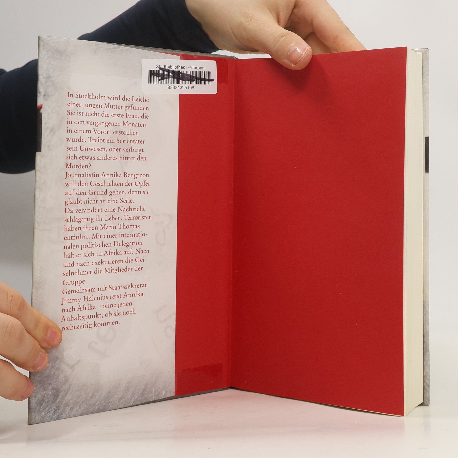 In einer Schneewehe liegt eine blasse schöne Frau. Sie ist nicht die Erste, die in den vergangenen Monaten in einem Stockholmer Vorort erstochen wurde. Journalistin Annika Bengtzon glaubt nicht an einen Serienmörder und beginnt zu recherchieren. Plötzlich bricht eine Katastrophe über sie herein: Ihr Mann Thomas ist in Afrika entführt worden. Er ist derzeit in Nairobi mit einer internationalen politischen Delegation. Nach und nach exekutieren die Geiselnehmer die Mitglieder der Gruppe. Annika reist sofort dorthin und versucht mit allen Mitteln, ihren Mann zu retten.