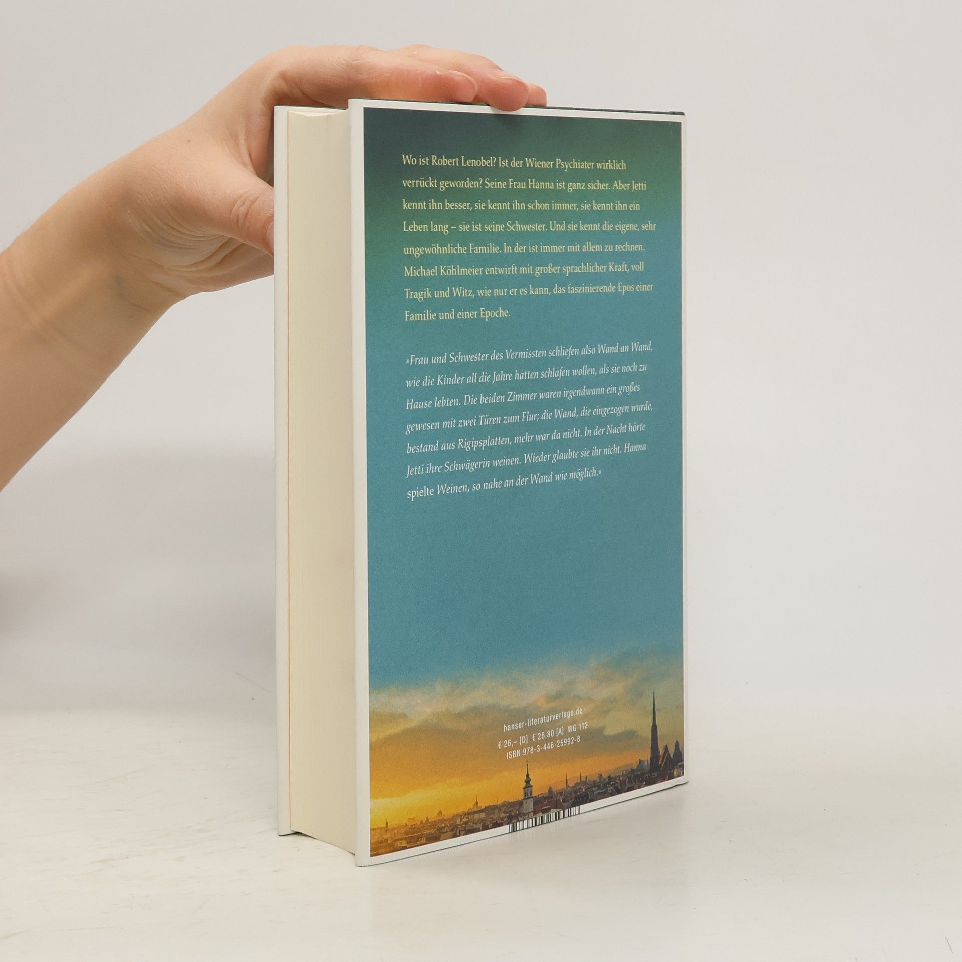 Im Mai mailt Hanna an ihre Schwägerin in Dublin: Komm, dein Bruder wird verrückt! Zwei Tage später landet Jetti Lenobel in Wien – und Robert ist verschwunden. Doch Jetti glaubt nicht daran, dass der Bruder verrückt geworden ist. Sie kennt ihre sehr ungewöhnliche jüdische Familie. In der ist immer mit allem zu rechnen. Dann kommt die Nachricht des Bruders: „Ich bitte dich, dass Du mit niemandem darüber sprichst!!! Ich will es so. Ich bin in Israel, dem Land der Väter. Aber an die Väter denke ich nicht.“ In den merkwürdigen, verschlungenen Lebensläufen der Geschwister Jetti und Robert, seiner Frau, ihrer Kinder und Freunde, erzählt Köhlmeier packend von dem, was jeder sein Leben lang mit sich trägt.