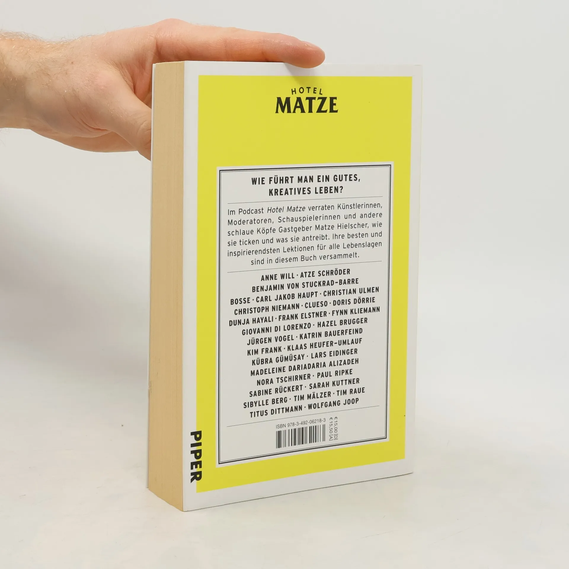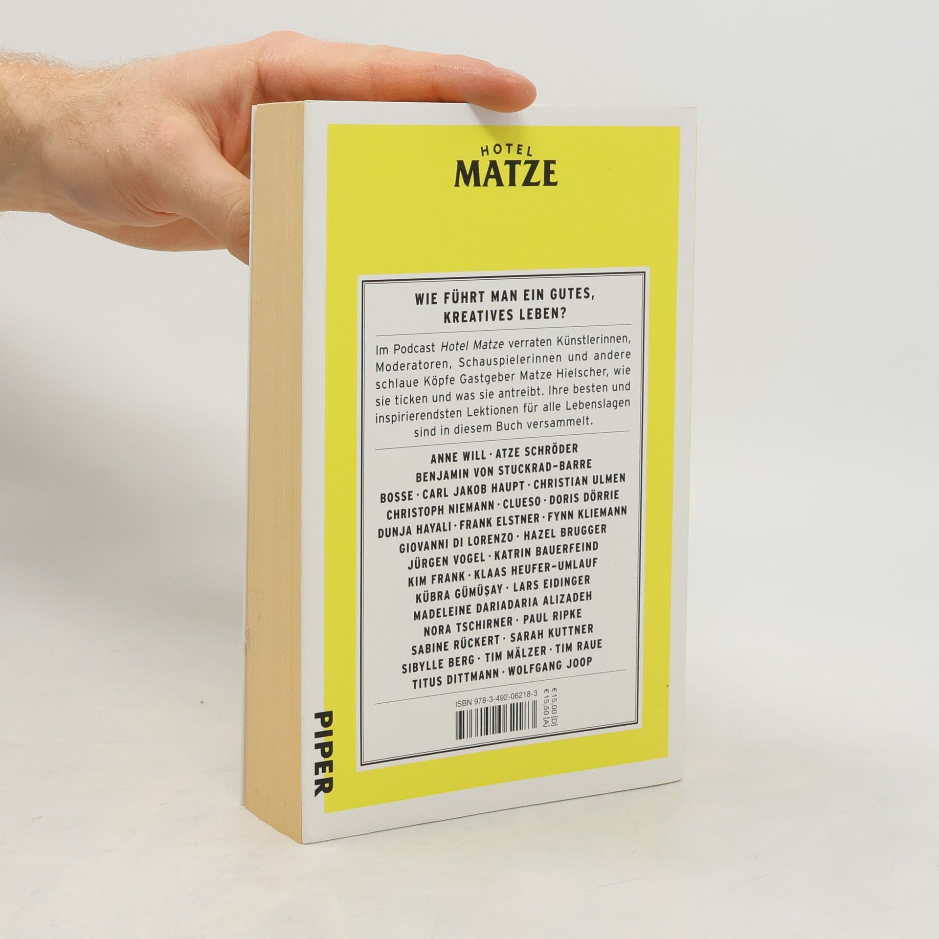 Wie führt man ein gutes, kreatives Leben? Im Podcast Hotel Matze teilen Schauspieler*innen, Künstler*innen und andere Kreative mit Gastgeber Matze Hielscher ihre Lebensweisheiten. Von prominenten Gästen wie Nora Tschirner, die die Bedeutung von Auszeiten betont, bis hin zu Frank Elstner, der erklärt, wie man Ideen loslässt, gibt es zahlreiche Einblicke. Illustrator Christoph Niemann berichtet, wie er auf Knopfdruck kreativ wird, während Anne Will ihren Karriereweg erläutert. In diesem Buch hat Matze Hielscher die besten Lebensrezepte von faszinierenden Persönlichkeiten versammelt und bietet inspirierende Impulse für die eigene Lebensführung. Die Gespräche bei Hotel Matze wirken wie Treffen alter Freunde, was den Vorteil hat, dass die Gäste Hielscher vertrauliche Details anvertrauen, die sie selten einem Journalisten erzählen würden. Die wichtigsten Lektionen aus über hundert Gesprächen über das gute Leben, Erfolg und den Umgang mit sich selbst werden hier zusammengefasst. Prominente wie Atze Schröder, Benjamin von Stuckrad-Barre, Clueso, Doris Dörrie und viele andere teilen ihre Erfahrungen und Perspektiven, die den Leser dazu anregen, über das eigene Leben nachzudenken und neue Wege zu finden.