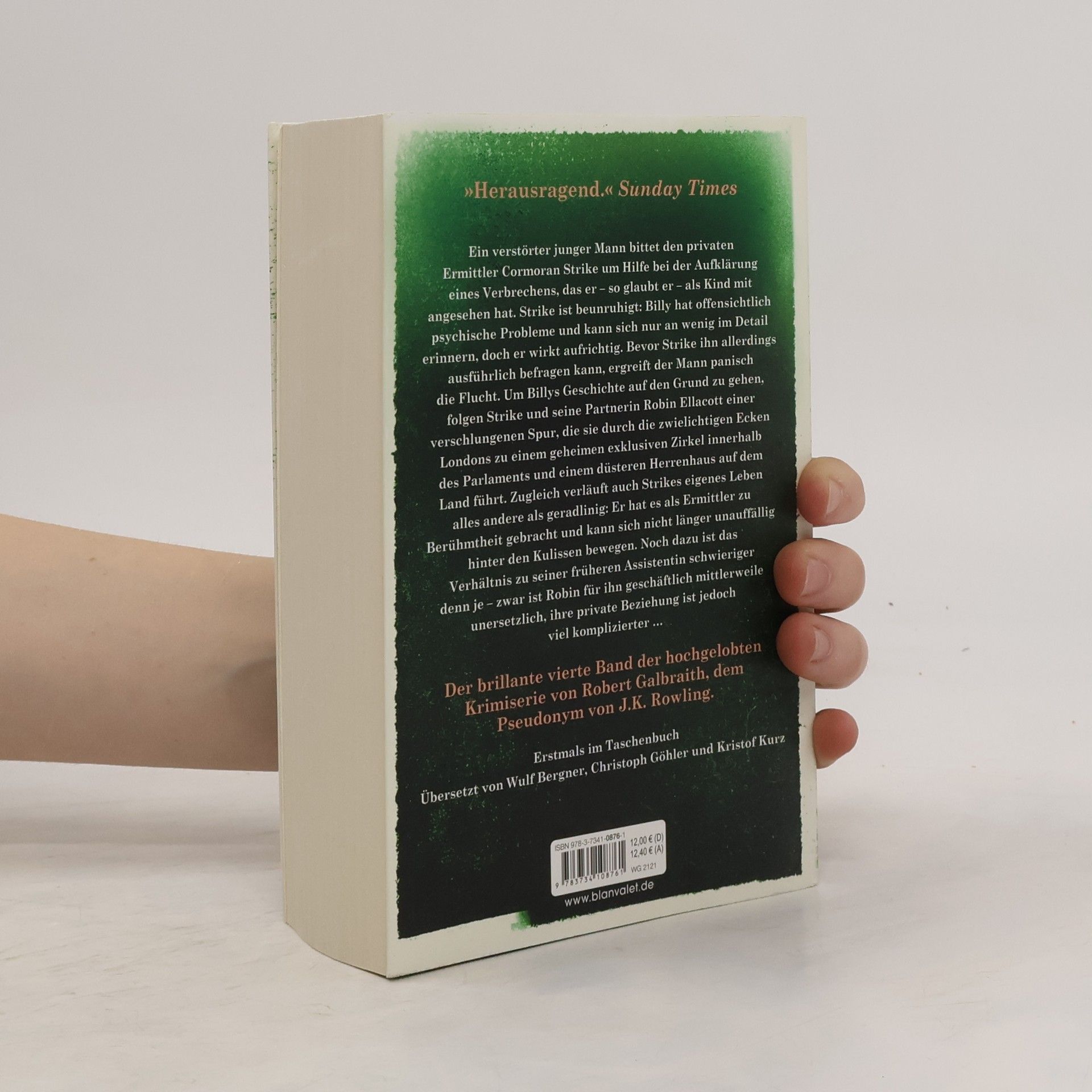 Finsterer als die düstersten Ecken Londons ... Der bislang atemberaubendste Roman von Robert Galbraith, dem Pseudonym von J.K. Rowling! Ein verstörter junger Mann bittet den privaten Ermittler Cormoran Strike um Hilfe bei der Aufklärung eines Verbrechens, das er – so glaubt er – als Kind mit angesehen hat. Strike ist beunruhigt: Billy hat offensichtlich psychische Probleme und kann sich nur an wenig im Detail erinnern, doch er wirkt aufrichtig. Bevor Strike ihn allerdings ausführlich befragen kann, ergreift der Mann panisch die Flucht. Um Billys Geschichte auf den Grund zu gehen, folgen Strike und Robin Ellacott – einst seine Assistentin, jetzt seine Geschäftspartnerin – einer verschlungenen Spur, die sie durch die zwielichtigen Ecken Londons, in die oberen Kreise des Parlaments und zu einem prachtvollen, doch düsteren Herrenhaus auf dem Land führt. Zugleich verläuft auch Strikes eigenes Leben alles andere als gradlinig: Er hat es als Ermittler zu Berühmtheit gebracht und kann sich nicht länger unauffällig hinter den Kulissen bewegen. Noch dazu ist das Verhältnis zu seiner früheren Assistentin schwieriger denn je – zwar ist Robin für ihn geschäftlich mittlerweile unersetzlich, ihre private Beziehung ist jedoch viel komplizierter …