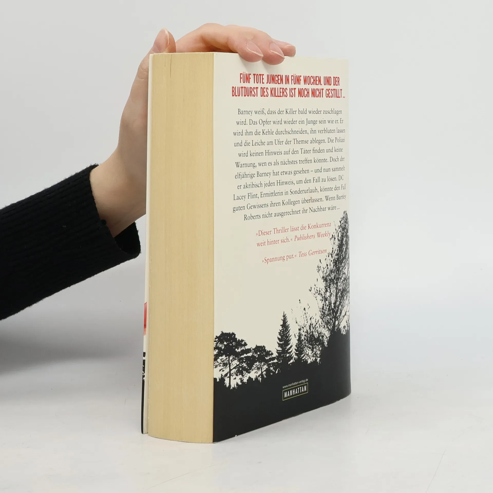 Fünf tote Jungen in fünf Wochen. Und der Blutdurst des Killers ist noch nicht gestillt … Barney weiß, dass der Killer bald wieder zuschlagen wird. Das Opfer wird wieder ein Junge sein wie er. Er wird ihm die Kehle durchschneiden, ihn verbluten lassen und die Leiche am Ufer der Themse ablegen. Die Polizei wird keinen Hinweis auf den Täter finden und keine Warnung, wen es als nächstes treffen könnte. Doch der elfjährige Barney hat etwas gesehen – und nun sammelt er akribisch jeden Hinweis, um den Fall zu lösen. DC Lacey Flint, Ermittlerin in Sonderurlaub, könnte den Fall guten Gewissens ihren Kollegen überlassen. Wenn Barney Roberts nicht ausgerechnet ihr Nachbar wäre …