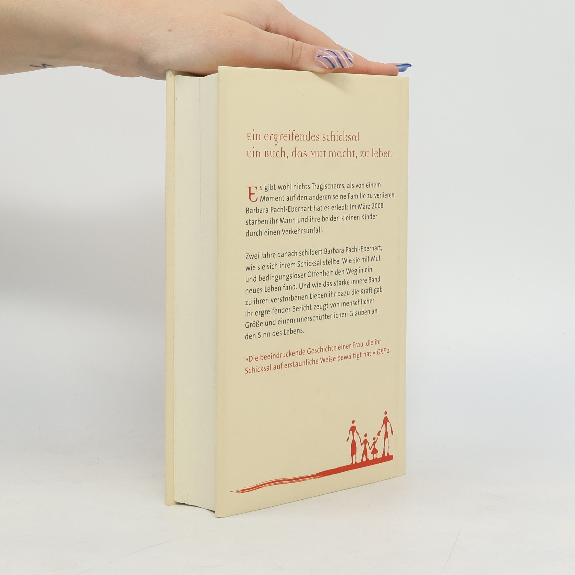 Ein Schicksal, das erschüttert – und dennoch Mut macht, zu leben Wie schafft es eine Frau, die ihren Mann und ihre beiden kleinen Kinder durch einen Verkehrsunfall verliert, überhaupt weiterzuleben? Fünf Tage nach dem schrecklichen Ereignis schreibt Barbara Pachl-Eberhart einen offenen Brief an ihre Verwandten und Freunde, der in beeindruckender Intensität ihre Gefühle darlegt. Rasch findet das erschütternde Dokument durch Internet, Zeitungen und Zeitschriften eine große Verbreitung. Die Tragödie dieser Familie bewegt Tausende Menschen. Zwei Jahre nach dem tragischen Ereignis schildert Barbara Pachl-Eberhart nun ihren Weg in ein neues Leben. Die Offenheit, mit der sie sich ihrem Schicksal stellt, und der Mut, mit dem sie Schritt für Schritt in eine unbekannte Zukunft geht, zeugen auf ergreifende Weise von menschlicher Größe und einem unerschütterlichen Glauben an den Sinn des Lebens. Die Autorin wurde 2009 mit dem wichtigsten österreichischen Frauenpreis, dem „Leading Ladies Award“, ausgezeichnet.