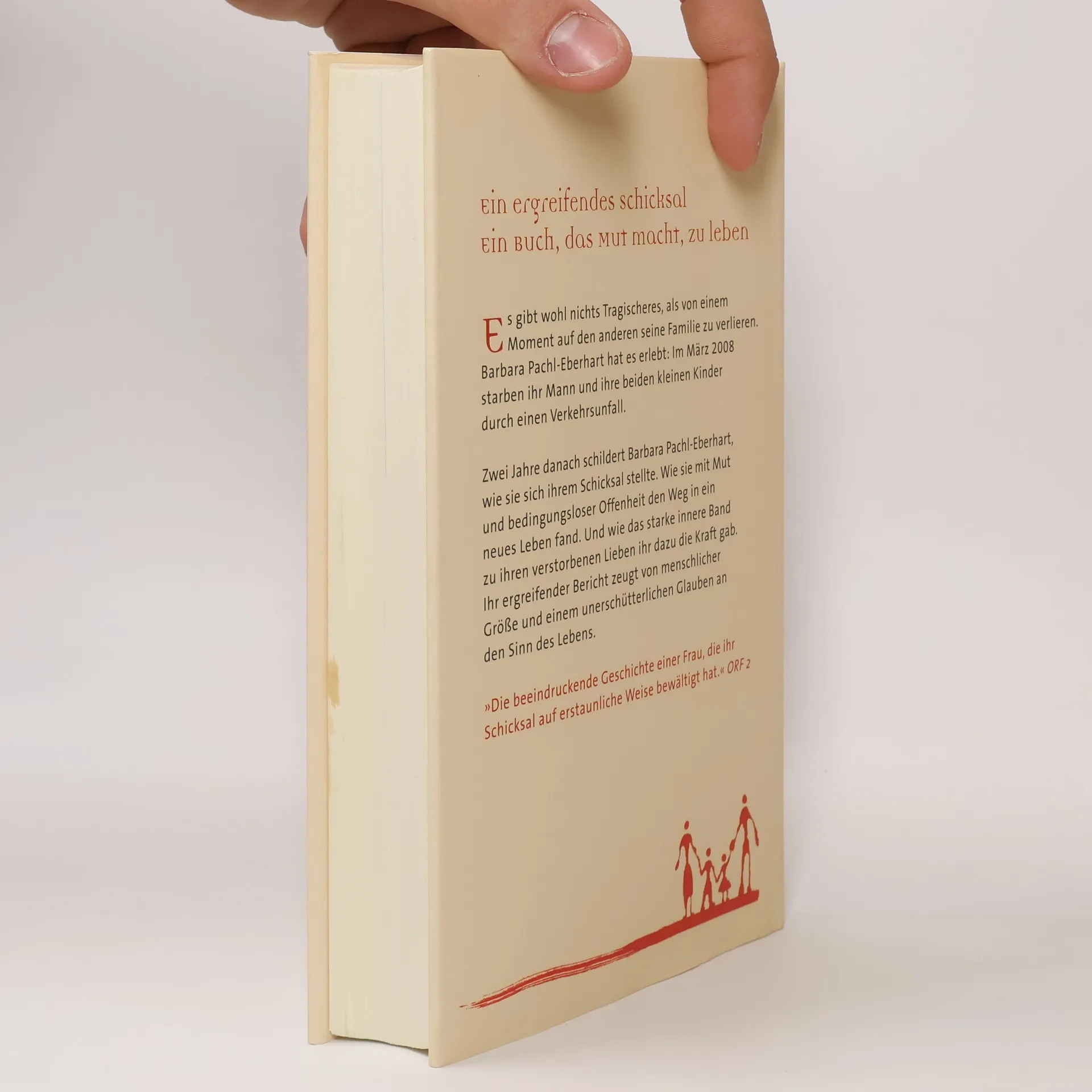 Ein Schicksal, das erschüttert – und dennoch Mut macht, zu leben Wie schafft es eine Frau, die ihren Mann und ihre beiden kleinen Kinder durch einen Verkehrsunfall verliert, überhaupt weiterzuleben? Fünf Tage nach dem schrecklichen Ereignis schreibt Barbara Pachl-Eberhart einen offenen Brief an ihre Verwandten und Freunde, der in beeindruckender Intensität ihre Gefühle darlegt. Rasch findet das erschütternde Dokument durch Internet, Zeitungen und Zeitschriften eine große Verbreitung. Die Tragödie dieser Familie bewegt Tausende Menschen. Zwei Jahre nach dem tragischen Ereignis schildert Barbara Pachl-Eberhart nun ihren Weg in ein neues Leben. Die Offenheit, mit der sie sich ihrem Schicksal stellt, und der Mut, mit dem sie Schritt für Schritt in eine unbekannte Zukunft geht, zeugen auf ergreifende Weise von menschlicher Größe und einem unerschütterlichen Glauben an den Sinn des Lebens. Die Autorin wurde 2009 mit dem wichtigsten österreichischen Frauenpreis, dem „Leading Ladies Award“, ausgezeichnet.