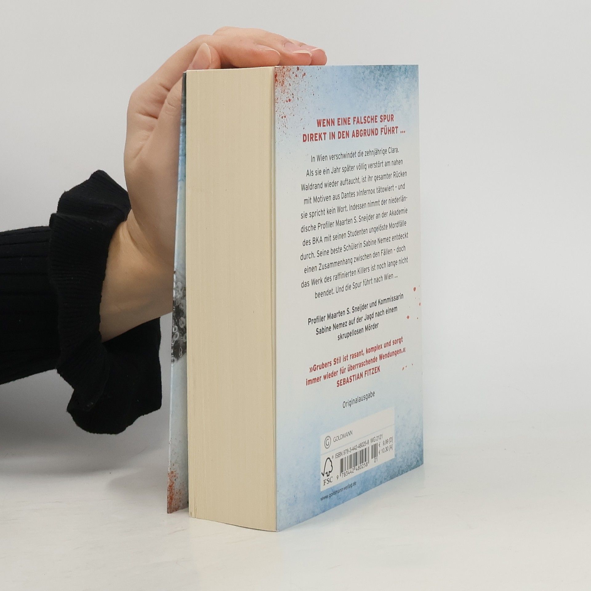 Sneijder und Nemez ermitteln wieder. In Wien verschwindet die zehnjährige Clara. Ein Jahr später taucht sie völlig verstört am nahen Waldrand wieder auf. Ihr gesamter Rücken ist mit Motiven aus Dantes „Inferno“ tätowiert – und sie spricht kein Wort. Indessen nimmt der niederländische Profiler Maarten S. Sneijder an der Akademie des BKA für hochbegabten Nachwuchs mit seinen Studenten ungelöste Mordfälle durch. Seine beste Schülerin Sabine Nemez entdeckt einen Zusammenhang zwischen mehreren Fällen – aber das Werk des raffinierten Killers ist noch lange nicht beendet. Seine Spur führt nach Wien – wo Clara die einzige ist, die den Mörder je zu Gesicht bekommen hat … Der zweite Fall für Sneijder und Nemez.