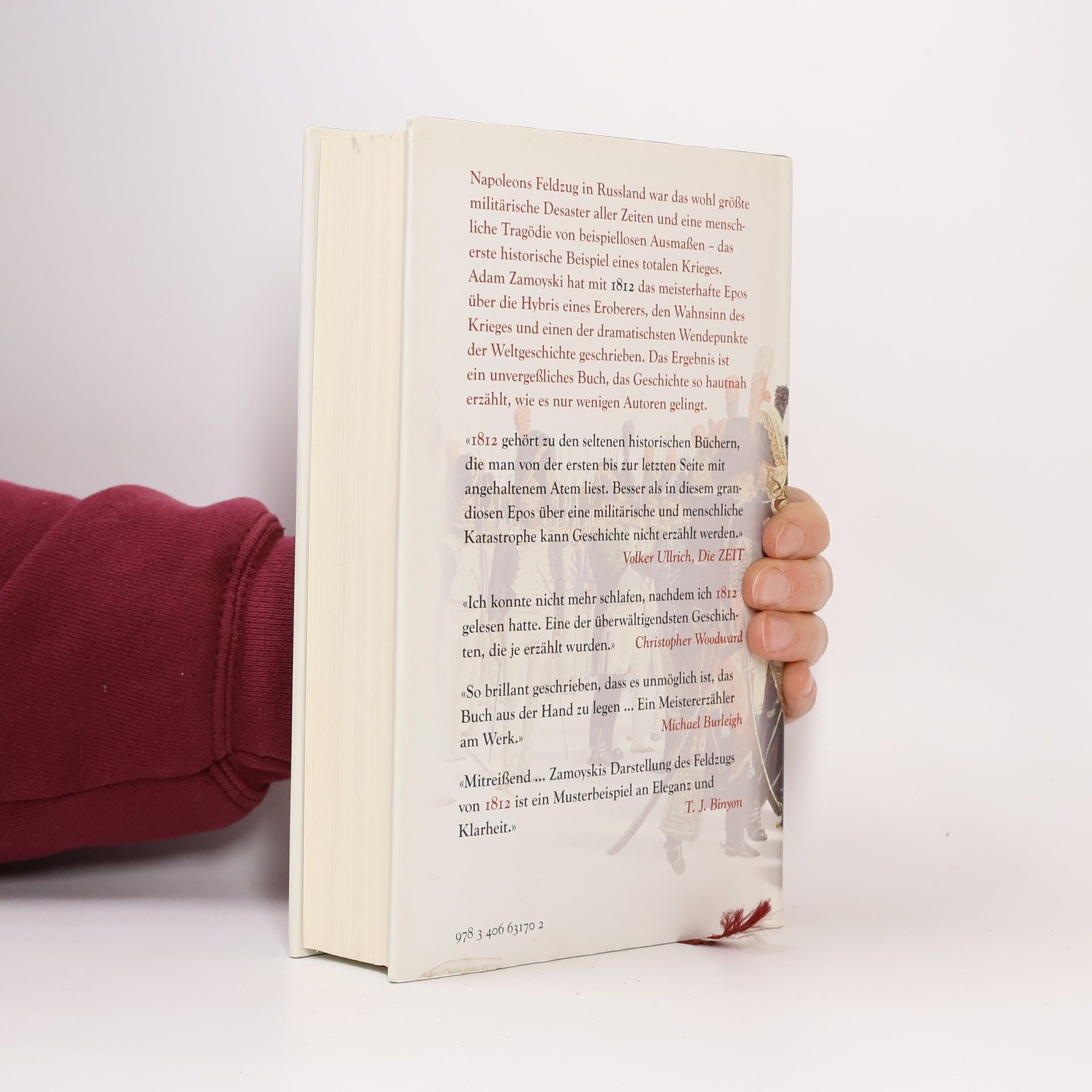 Napoleons Feldzug in Russland war das vielleicht größte militärische Desaster aller Zeiten und eine menschliche Tragödie von beispiellosen Ausmaßen - das erste historische Beispiel eines totalen Krieges. 1812 ist das meisterhafte Epos über die Hybris eines Eroberers, den Wahnsinn des Krieges und einen der dramatischsten Wendepunkte der Weltgeschichte. Adam Zamoyski hat eine Vielzahl von Augenzeugenberichten in französischer, russischer, deutscher, polnischer und italienischer Sprache, oft erstmals, ausgewertet und eine unerhört lebendige, prägnant urteilende und brillant geschriebene histoire totale, ein „Krieg und Frieden“ der Militärgeschichte, geschrieben. Das Ergebnis ist ein unvergessliches Buch, das Geschichte so hautnah erzählt, wie es nur wenigen Autoren gelingt. „Mitreißend... Ein brillantes Stück narrativer Historie, voll schillernd komponierter Einzelbeschreibungen, ein rundum faszinierender Bericht über eines der wahrscheinlich größten militärischen Desaster aller Zeiten ... Zamoyskis Darstellung des Feldzugs von 1812 ist ein Musterbeispiel an Eleganz und Klarheit.“ T. J. Binyan „Ein absolut bewundernswertes Buch.“ Antony Beevor