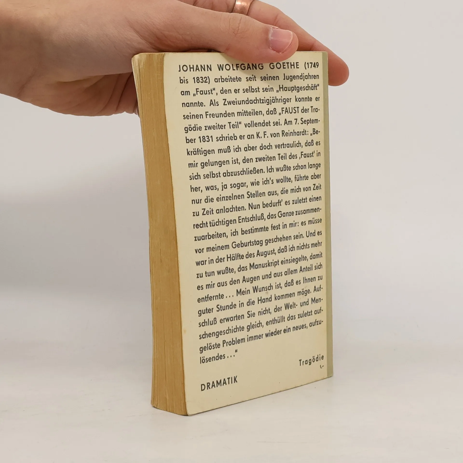 Die Arbeit an seinem „Faust“ hat Goethe von den Anfängen des Urfaust im Jahre 1772 bis zur Vollendung des 2. Teiles ein Jahr vor seinem Tode sein Leben lang beschäftigt. Das Schicksal Fausts, der aus unersättlichem Wissensdrang einen Pakt mit dem Teufel schliesst, wird zum Gegenstand eines metaphysischen Welthandels zwischen dem an die irrende, aber gute Menschheit glaubenden Gott-Vater und Mephistopheles, der Verkörperung des Bösen. In diesem Werk spiegeln sich alle Stufen von Goethes Entwicklung vom Sturm und Drang der Jugend über die Klassik der Reifezeit bis zum grossartigen späten Stil Goethes wider. Mit Verszählung. Das Nachwort enthält: Der historische Faust - Die Volksbücher - Marlowes Tragödie und die Faustspiele in Deutschland - Zur Entstehungsgeschichte von Goethes Faustdichtung - Die Gretchentragödie - Zur Textgestaltung. Die ausführlichen Anmerkungen sind auf den Schulgebrauch abestellt.
