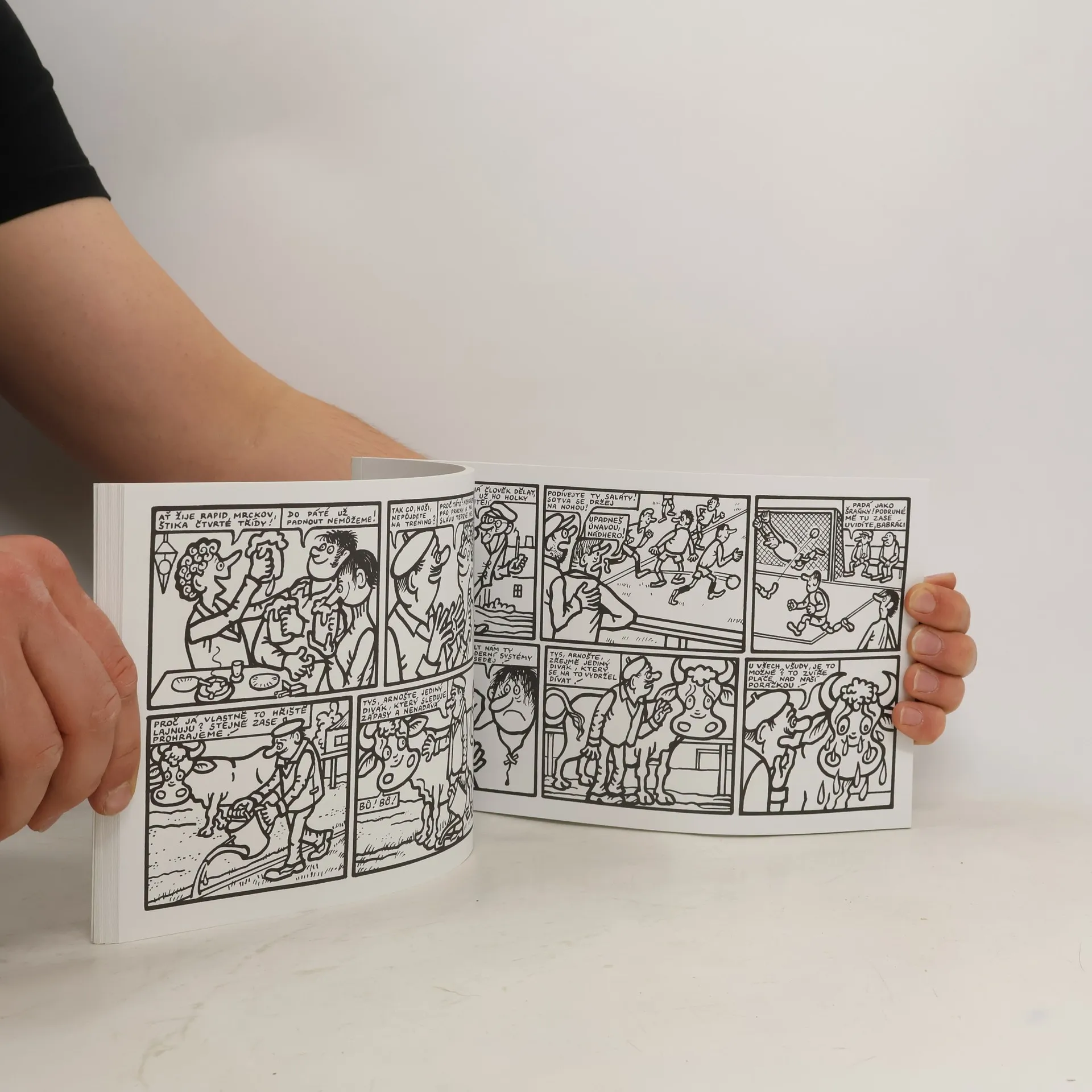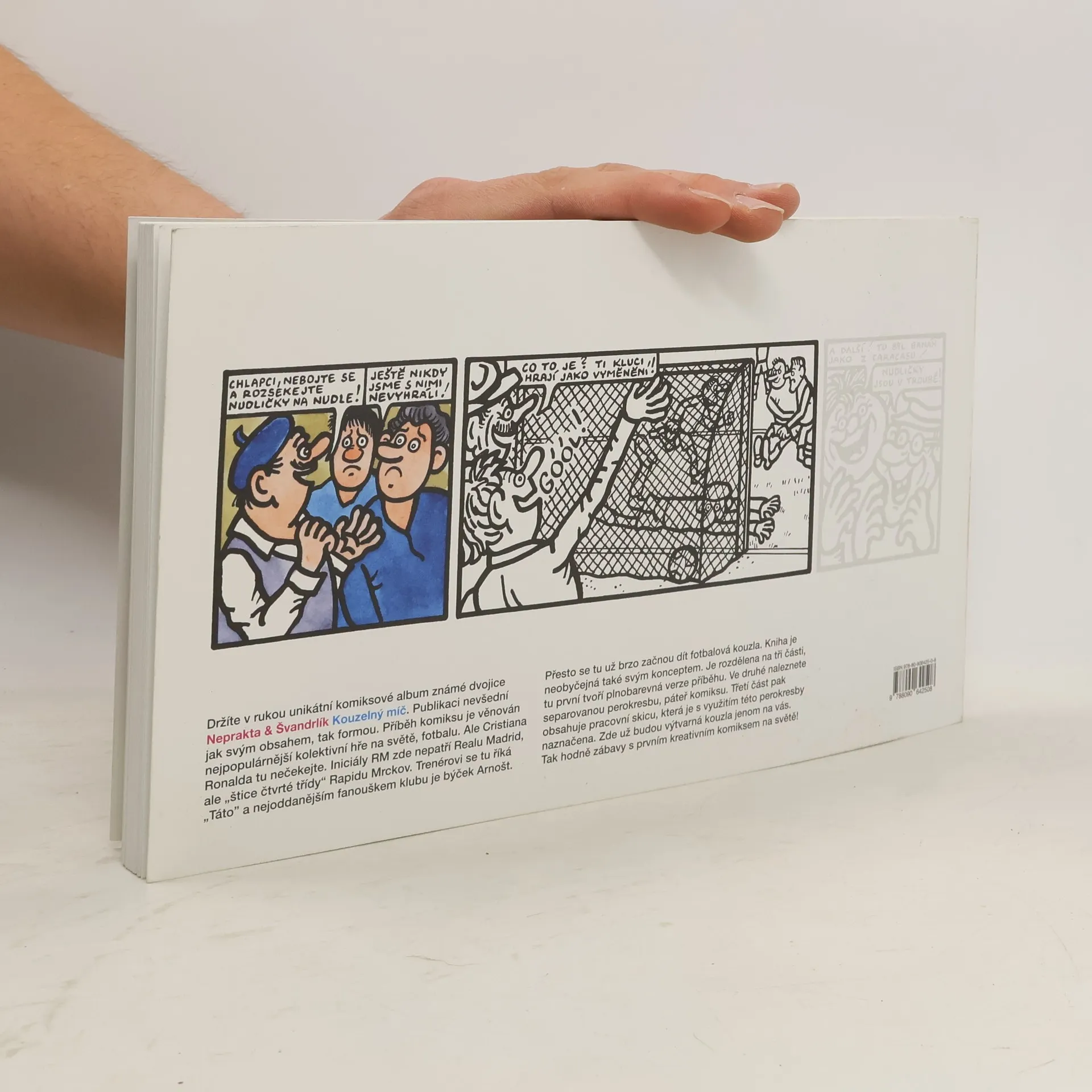 Komiks autorů Jiřího Wintera – Neprakty a Miloslava Švandrlíka, dvou velkých postav československého výtvarného umění a literatury, v nevšední – kreativní podobě. Příběh o lásce k fotbalu, kdy trenér vlastnoručně ušije pro svůj tým “kouzelný” míč z kůže býčka Arnošta, věrného fanouška klubu Rapid Mrckov, “štiky čtvrté třídy”. Ten je odveden na jatka poté, co obrečí další prohru v řadě, protože borci nejsou ochotni trénovat – do páté třídy přeci již padnout nemohou… Příběh o tom, co vše je člověk ochoten udělat pro slávu svého klubu a také o tom, že nakonec je to stejně vždy jenom o poctivé práci a fotbalové dřině. Kreativní podoba knihy dává možnost čtenáři nejen přečíst celobarevný příběh a uložit knihu do knihovny, ale vyzkoušet si na vlastní kůži díky černobílé verzi a pracovní skice, jak složitě takový komiks vzniká a co všechno jeho tvorba obnáší. V humorném příběhu se objeví slavná jména československého i světového fotbalu 70. let minulého století (Josef Masopust, Ivo Viktor, Zdeněk Nehoda, Pelé, Gerd Müller, Helenio Herrera ad.). Rapid Mrckov díky svému Kouzelnému míči změří své síly s pražskými kluby Spartou, Slavií, Duklou, Bohemians a Viktoria Žižkov, do Mrckova je “fotbalovou sekcí” poslán prověřit kvality zázračného týmu Baník Ostrava.