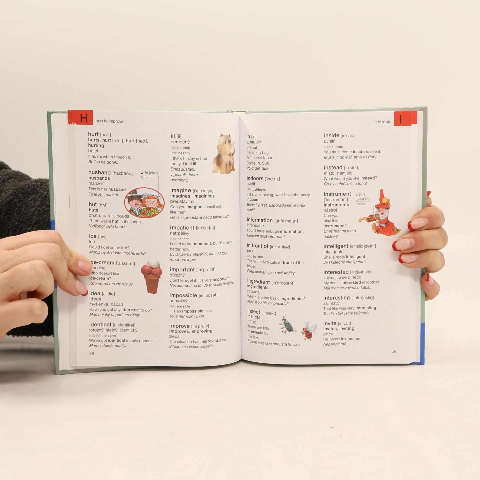 Anglicko-český a česko-anglický slovník obsahující stručnou gramatiku. Pro děti mladšího školního věku.