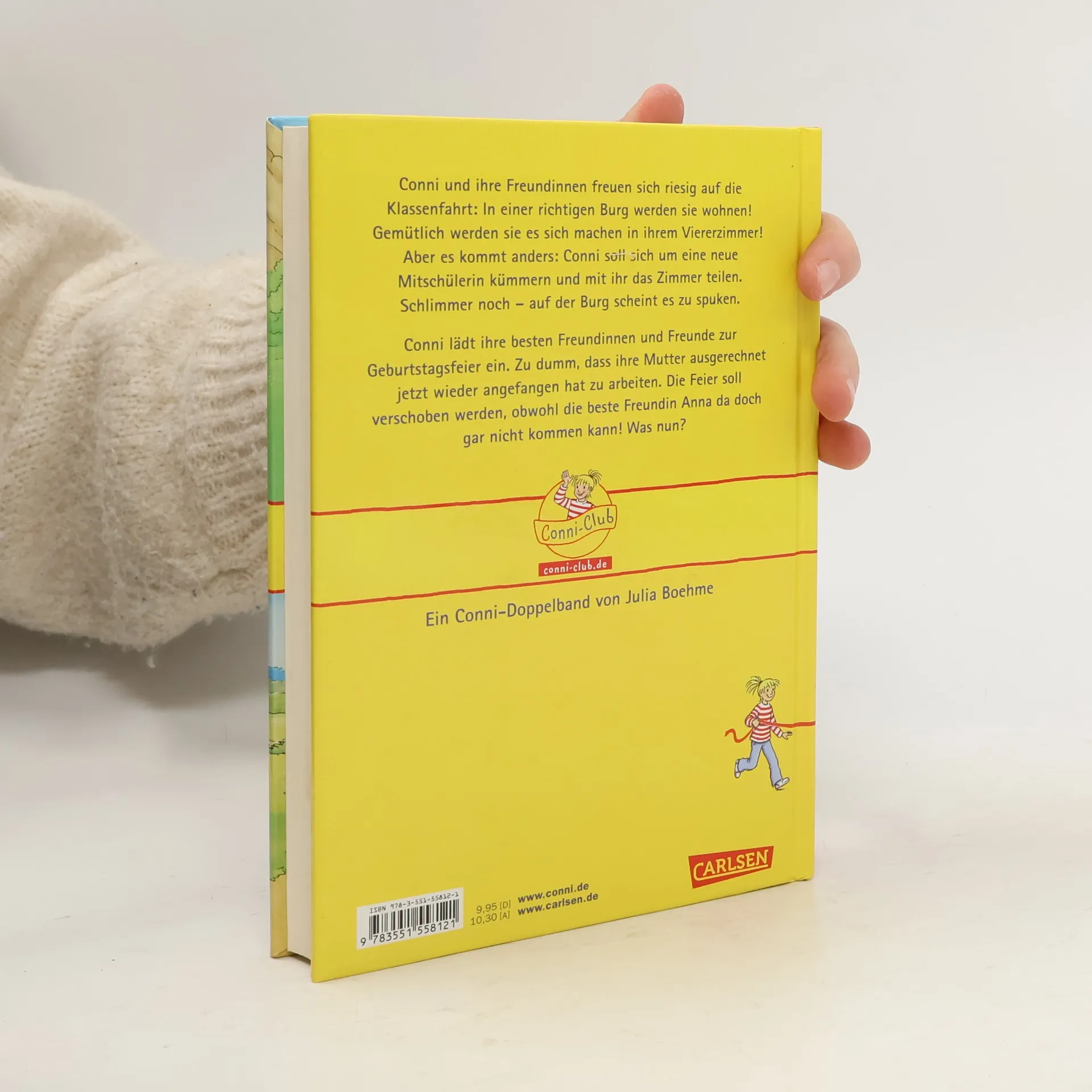 Conni und ihre Freundinnen freuen sich riesig auf die Klassenfahrt: In einer richtigen Burg werden sie wohnen! Gemütlich werden sie es sich machen in ihrem Viererzimmer! Aber es kommt anders: Conni soll sich um eine neue Mitschülerin kümmern und mit ihr das Zimmer teilen. Schlimmer noch - auf der Burg scheint es zu spuken. Und ausgerechnet der freche Torben braucht Connis Hilfe. Conni will endlich Geburtstag haben. Vorsorglich lädt sie schon einmal ihre besten Freundinnen und Freunde zur Geburtstagsfeier ein. Zu dumm, dass ihre Mutter ausgerechnet jetzt wieder angefangen hat zu arbeiten. Die Feier soll verschoben werden, obwohl die beste Freundin Anna da doch gar nicht kommen kann! Was nun? Ein Conni-Doppelband von Julia Boehme