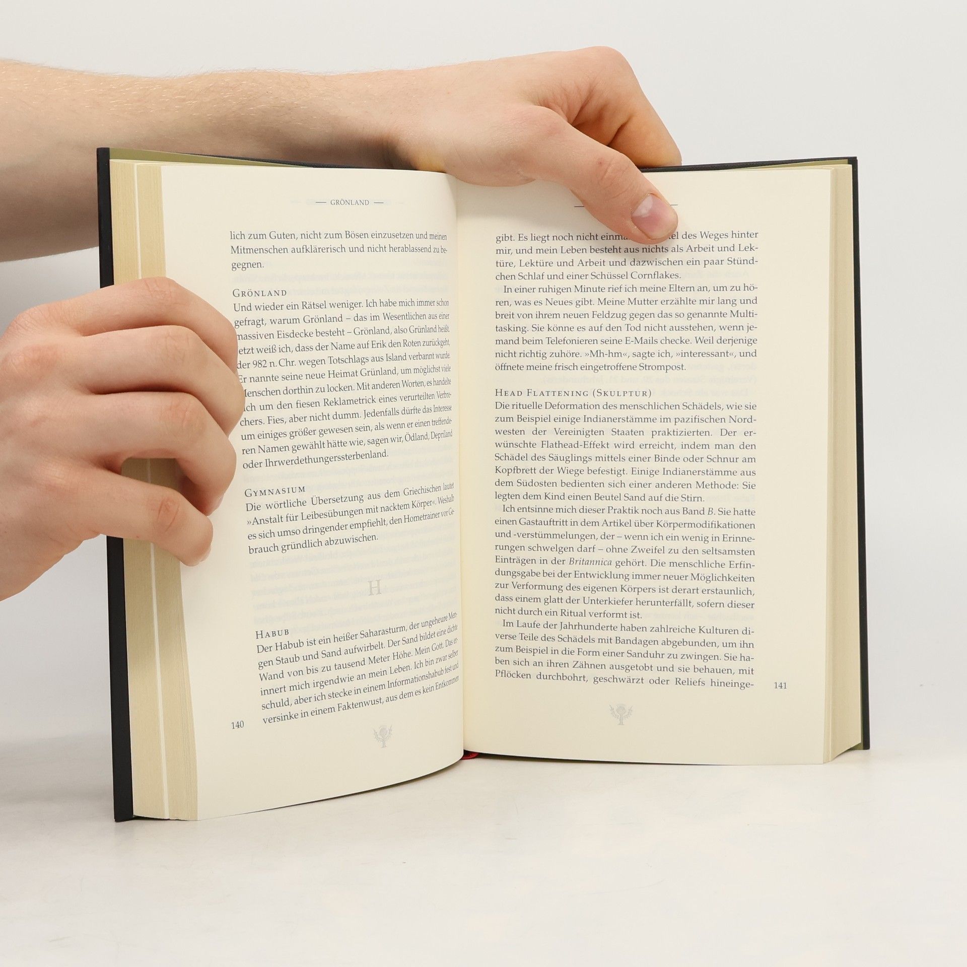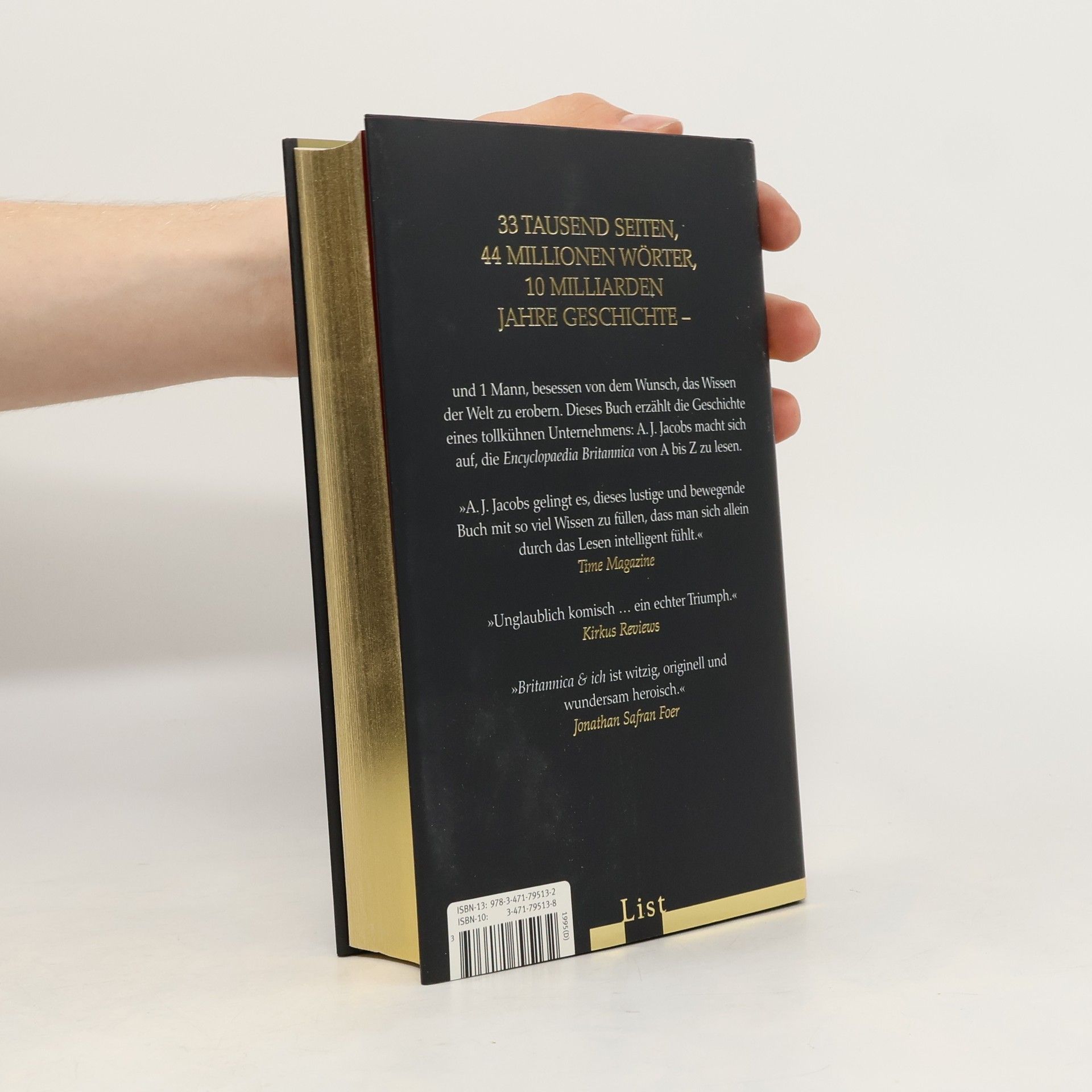 33 Tausend Seiten, 44 Millionen Wörter, 10 Milliarden Jahre Geschichte – und 1 Mann, besessen von dem Wunsch, das Wissen der Welt zu erobern. Britannica & ich ist die Geschichte eines tollkühnen Unternehmens: A. J. Jacobs macht sich auf, die Encyclopaedia Britannica von A bis Z zu lesen. A. J. Jacobs weiß, daß die Achagua-Indianer Seen anbeteten, er weiß, daß Brandy von einem Holländer erfunden wurde und daß Napoleon gern Schlittschuh lief. Er weiß das alles, weil er die Encyclopaedia Britannica von A bis Z durchliest. Seine Frau Julie ist der Meinung, es sei reine Zeitverschwendung, seine Freunde halten ihn für verrückt. Nur sein Vater, der einst dasselbe Vorhaben begann – allerdings nur bis Borneo kam – unterstützt ihn. Über 15 Monate hinweg bewegt sich A. J. Jacobs nun auf dem Pfad der breiten Allgemeinbildung: Goethe oder Pythagoras, die Auster oder ein unaussprechlicher Ort in Polen, alles wird angeschaut, memoriert und mit höchst geistreichen Kommentaren versehen. Mit viel Sinn für Komik und absurde Details erzählt er, welche Auswirkungen die »Operation Britannica« auf sein Leben hat – auf seine Ehe, seine charmante, aber exzentrische Familie und seine Arbeit als Journalist.