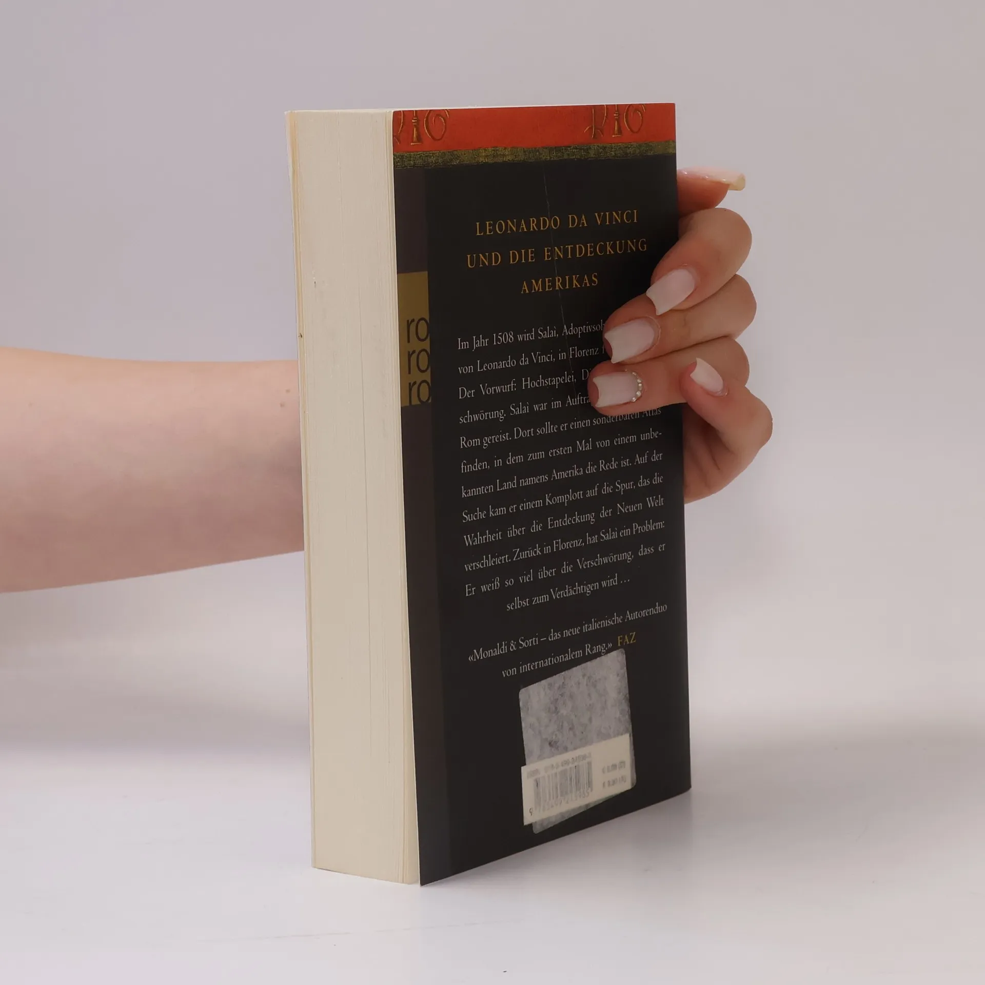 Leonardo Da Vinci und die Entdeckung Amerikas. Im Jahr 1508 wird Salaì, Adoptivsohn und Gehilfe von Leonardo da Vinci, in Florenz festgenommen. Der Vorwurf: Hochstapelei, Diebstahl und Ver-schwörung. Salaì war im Auftrag Leonardos nach Rom gereist. Dort sollte er einen sonderbaren Atlas finden, in dem zum ersten Mal von einem unbe-kannten Land namens Amerika die Rede ist. Auf der Suche kam er einem Komplott auf die Spur, das die Wahrheit über die Entdeckung der Neuen Welt verschleiert. Zurück in Florenz, hat Salaì ein Problem: Er weiß so viel über die Verschwörung, dass er selbst zum Verdächtigen wird … «Monaldi & Sorti – das neue italienische Autorenduo von internationalem Rang.» FAZ