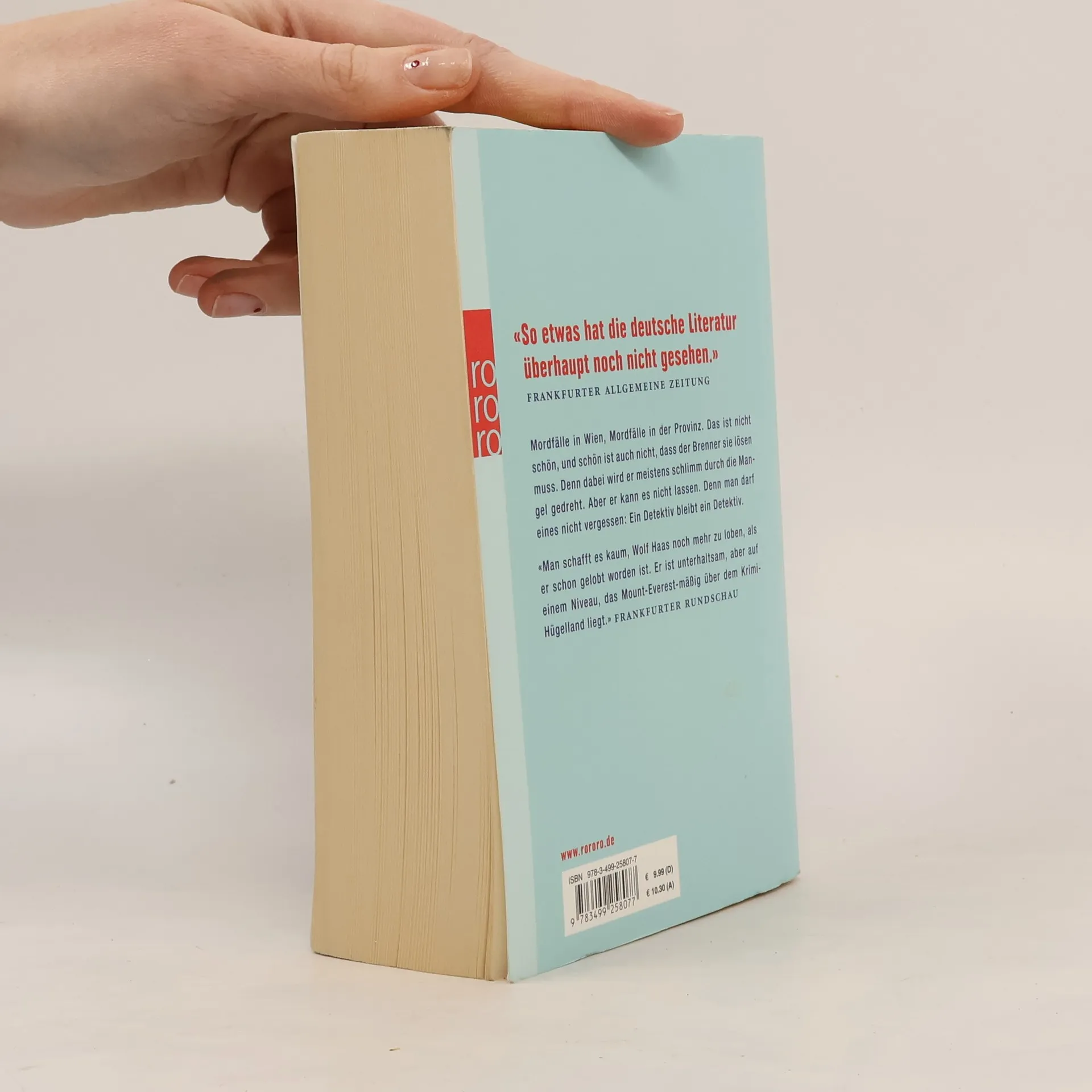 «So etwas hat die deutsche Literatur überhaupt noch nicht gesehen.» frankfurter allgemeine zeitung Mordfälle in Wien, Mordfälle in der Provinz. Das ist nicht schön, und schön ist auch nicht, dass der Brenner sie lösen muss. Denn dabei wird er meistens schlimm durch die Mangel gedreht. Aber er kann es nicht lassen. Denn man darf eines nicht vergessen: Ein Detektiv bleibt ein Detektiv. «Man schafft es kaum, Wolf Haas noch mehr zu loben, als er schon gelobt worden ist. Er ist unterhaltsam, aber auf einem Niveau, das Mount-Everest-mäßig über dem Krimi-Hügelland liegt.» frankfurter rundschau
