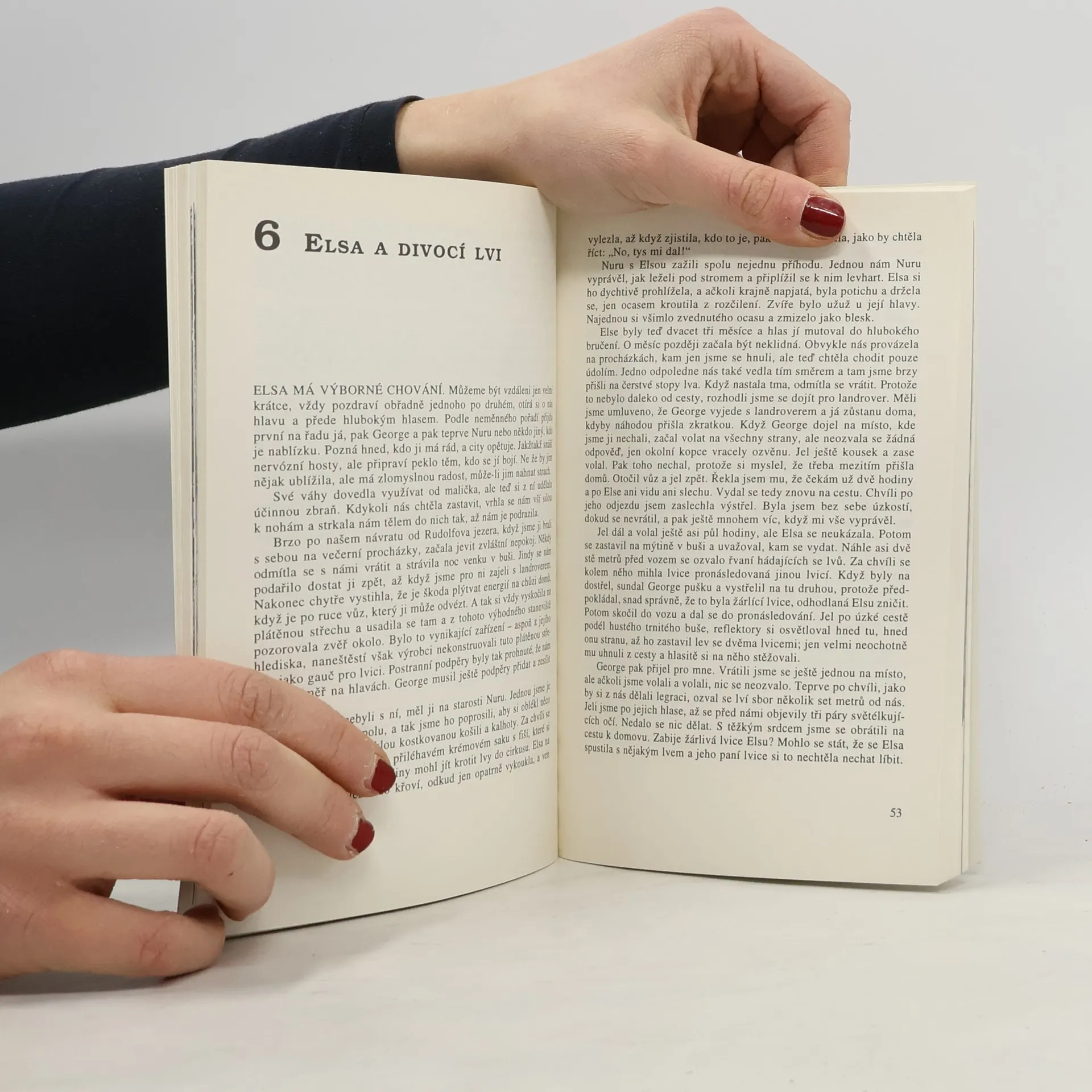 Nesmrtelné vyprávění o neobyčejném přátelství ženy a lvice, zachycuje životní osudy roztomilé, hravé Elsy – jak byla odchována lidmi a jak se postupně dokázala vrátit do náruče rodné divočiny, najít si druha a stát se matkou tří mláďat. Příběh Elsy je silným čtenářským zážitkem a zároveň unikátní studií psychologie divokých zvířat, působivým důkazem jejich inteligence, sebeovládání a emočních schopností. Vyprávění o soužití člověka se zvířaty na farmě i v buši je prosycené nádhernými, veselými i smutnějšími zážitky.