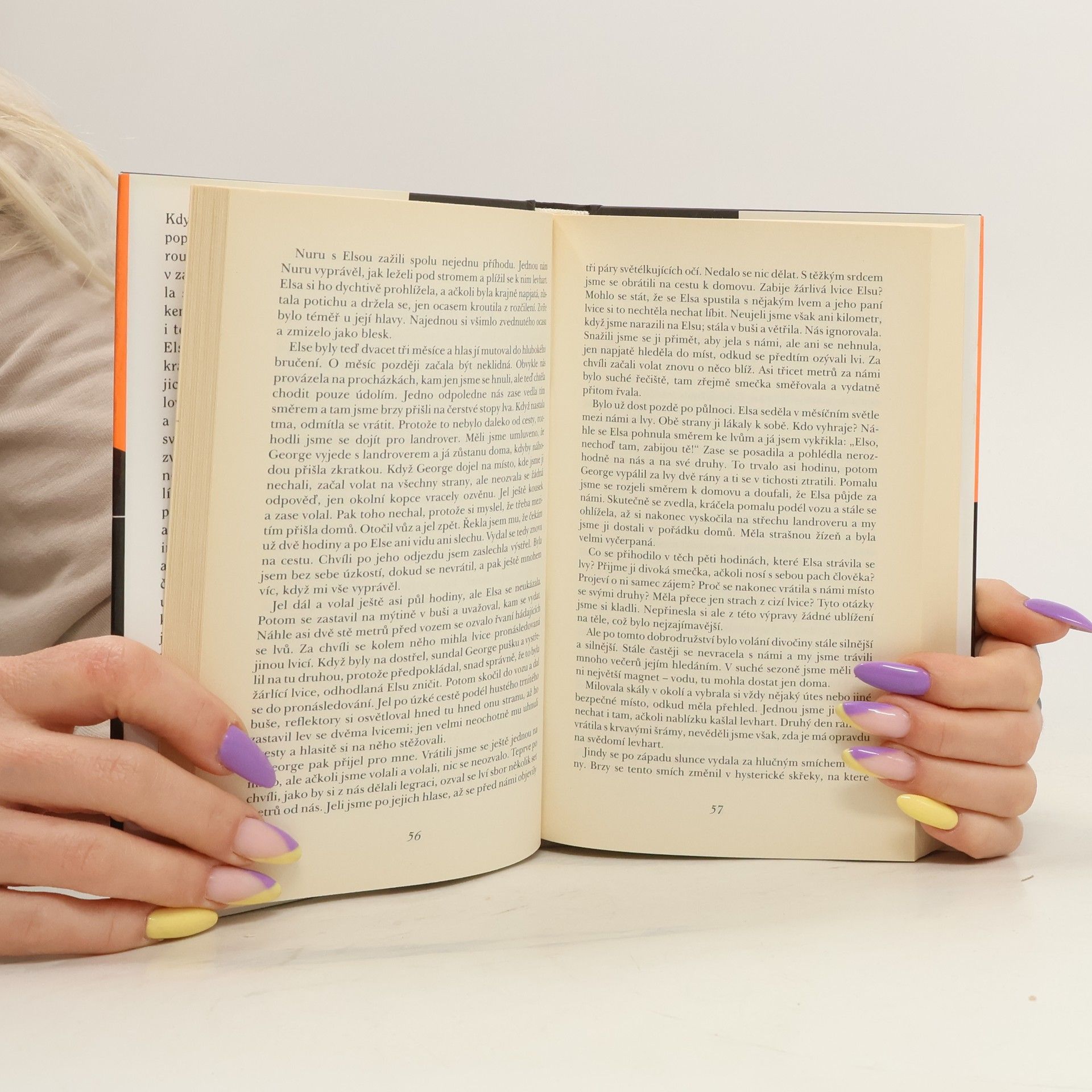 Nesmrtelné vyprávění o neobyčejném přátelství ženy a lvice, zachycuje životní osudy roztomilé, hravé Elsy – jak byla odchována lidmi a jak se postupně dokázala vrátit do náruče rodné divočiny, najít si druha a stát se matkou tří mláďat. Příběh Elsy je silným čtenářským zážitkem a zároveň unikátní studií psychologie divokých zvířat, působivým důkazem jejich inteligence, sebeovládání a emočních schopností. Vyprávění o soužití člověka se zvířaty na farmě i v buši je prosycené nádhernými, veselými i smutnějšími zážitky.