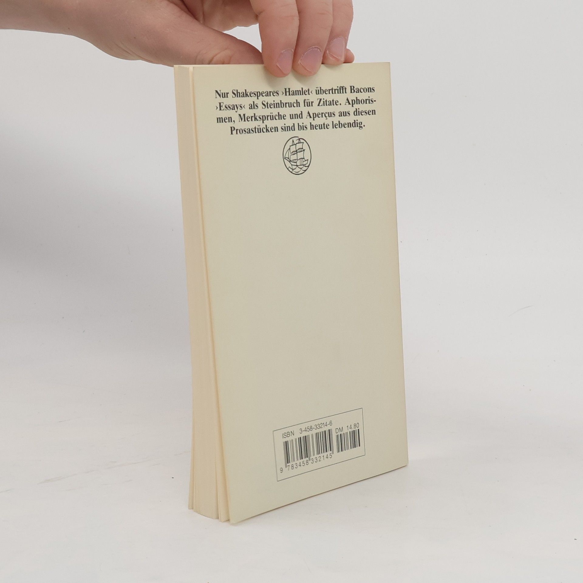 Die erste Ausgabe der Essays erschien 1597, erweiterte Fassungen 1612 und 1625. Knapp und nüchtern im Stil, geht es darin um Öffentliches ( Von hohen Ämtern, Von Parteien ) wie Privates ( Von Anhängern und Freunden, Vom Gespräch ), aber auch um allgemein Menschliches ( Von der Wahrheit, Von der Menschennatur ). Bacon verstand die Essays als eine Art Gebrauchsanleitung für das Überleben des Einzelnen in der Gesellschaft: Der Mensch sollte sich anpassen und verbessern können, getreu der Formel: »Das Benehmen der Menschen sei wie ihre Kleidung, nicht zu eng oder zu knapp, sondern mit Raum zu Bewegung und Übung.« Niemandem ist es gelungen, Ursache und Wirkung menschlicher Handlungen in ihren psychischen und sozialen Verflechtungen so prägnant zu beschreiben wie Francis Bacon, der, angeregt von Montaignes Essais , von Galilei und Descartes, in seinem Werk die Fundamente des modernen Denkens gelegt hat.